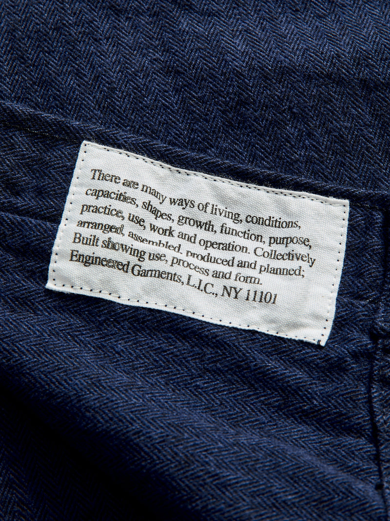 Founded 1999 by Daiki Suzuki in New York City, the Engineered Garments mission statement is "to make garments that become more personal through the experiences you have with them." Drawing from years buying for Nepenthes stores, Suzuki values unique garment construction with attention to detail; realized through Engineered Garments, each piece is designed with hidden qualities and meaning, straying from the idea of "perfect design."