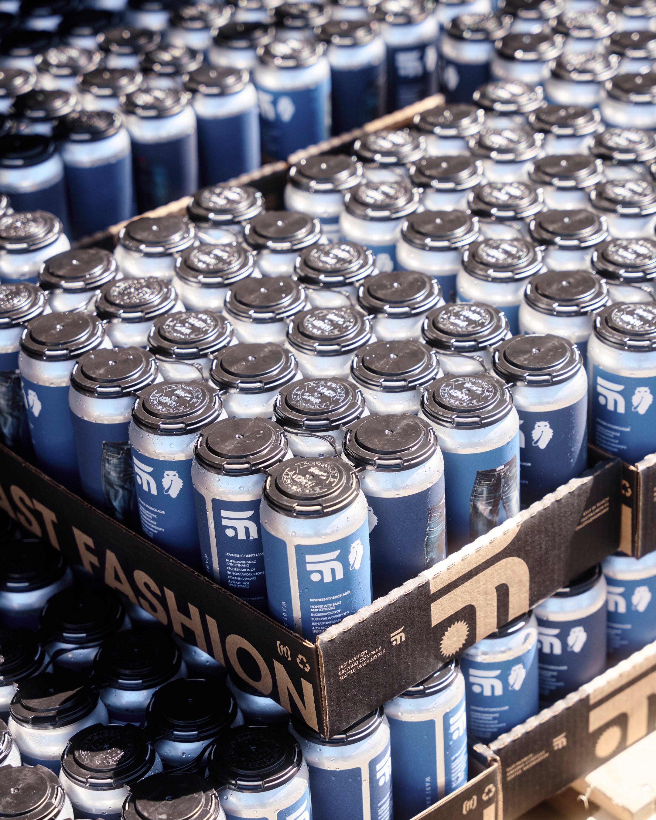 This all-new beer is hopped with Saaz and Tettnang hops from the Yakima Valley to yield an easy-drinking ultra-crisp lager. The 16oz beer cans are decorated with four collaborative labels, each featuring jeans from Blue Owl’s denim archive.
