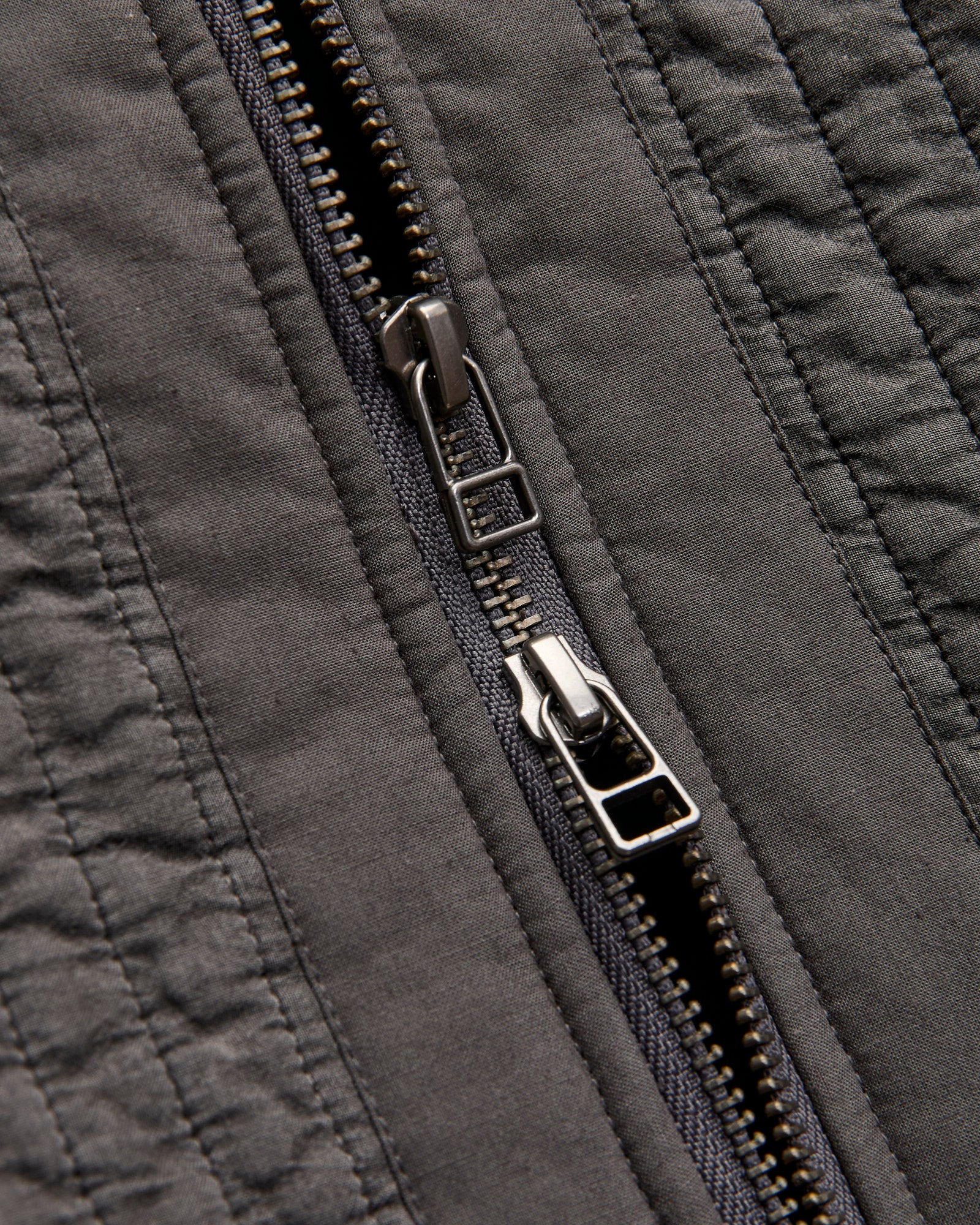 • 3sixteen's Liner Jacket is crafted using a padded cotton exterior and silky smooth rayon lining. Referencing vintage M-65 liner jackets, 3sixteen updates the design with vertical quilting instead of the traditional onion pattern. Finished with a two-way YKK zipper and patch hand warmer pockets.