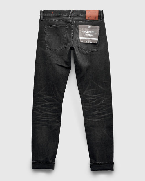 "Rilo" 10.5oz Washed Black Stretch Selvedge Denim - Pen Slim