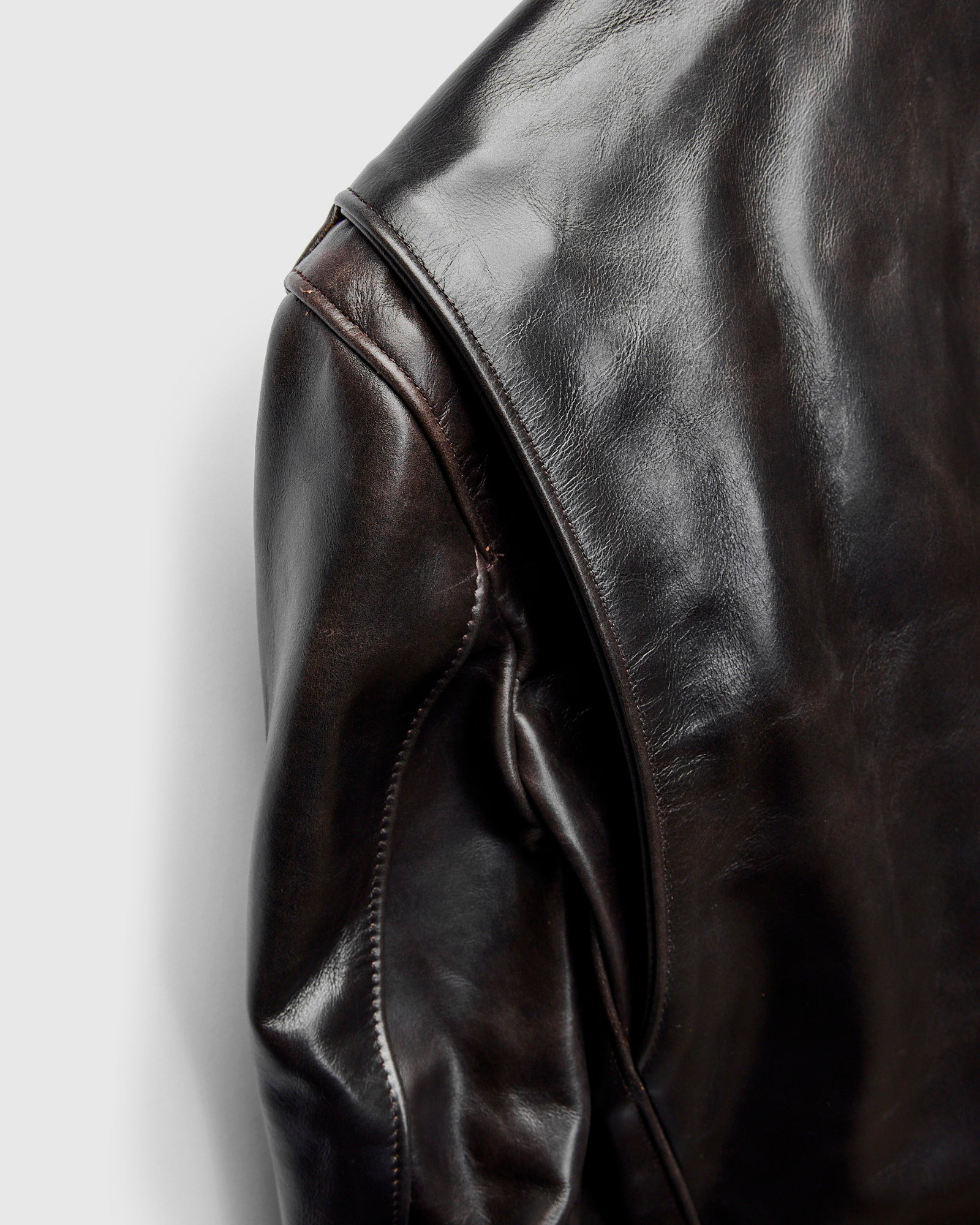 • The 688 Racer Jacket from Schott NYC is based on classic single rider center-zip motorcycle jackets, featuring minimalist details with maximum functionality. The rich, dark-brown cowhide leather is among the sturdiest and stiffest in Schott's collection, but is built to break in with wear and last a lifetime. With over a century of leather sewing and design expertise, Schott proudly makes this jacket from beginning to end in the USA.