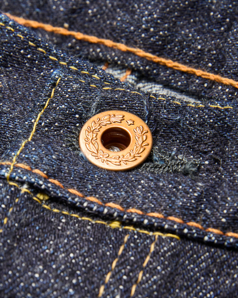 • 15.5oz unsanforized Japanese selvedge denim, rinsed to remove shrinkage