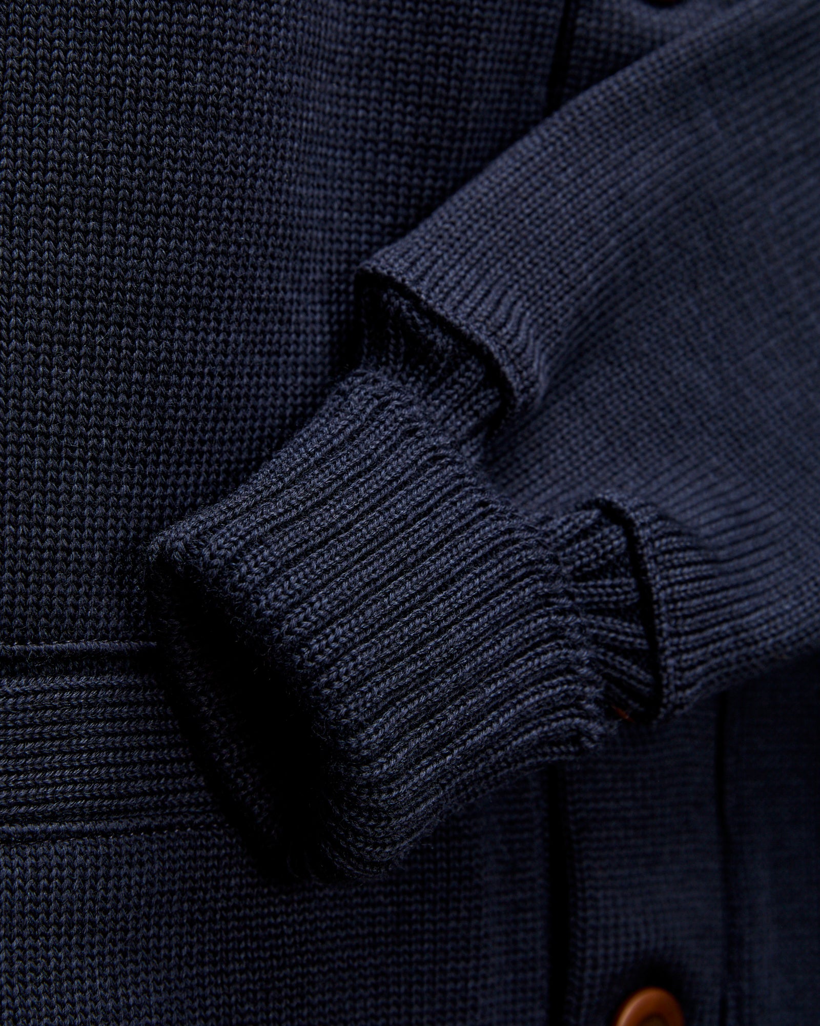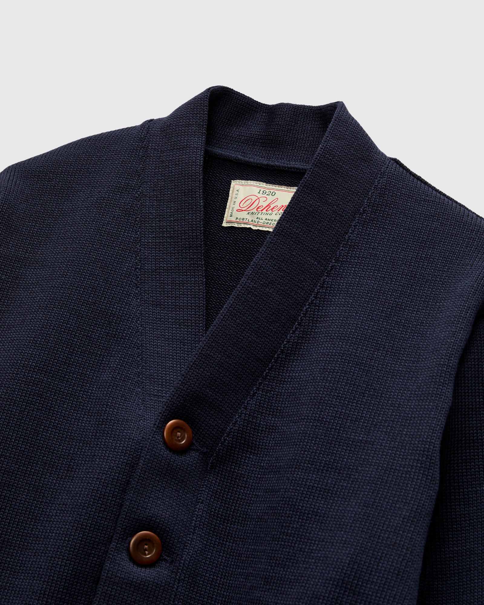 • Knit on the same machines Dehen used in the 1940s, the Classic Cardigan is a vintage repro pulled directly from the brand’s century-old archives. Made from extra-heavy worsted wool yarns, the sweater is built for long-term durability and timeless style. In true vintage fashion, the cardigan is finished with welt front pockets, 2x2 knit foldback cuffs, and heavy-duty corozo buttons.