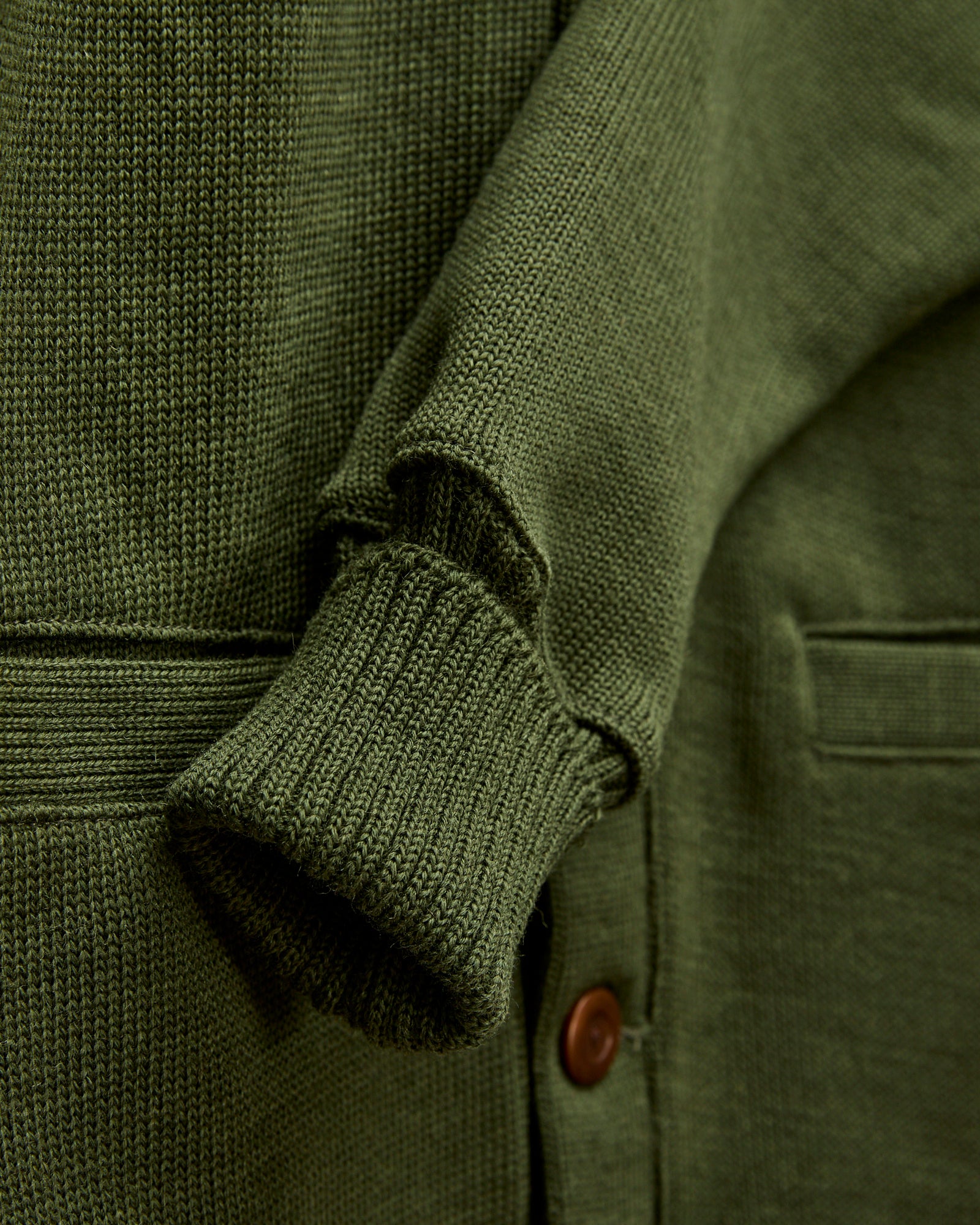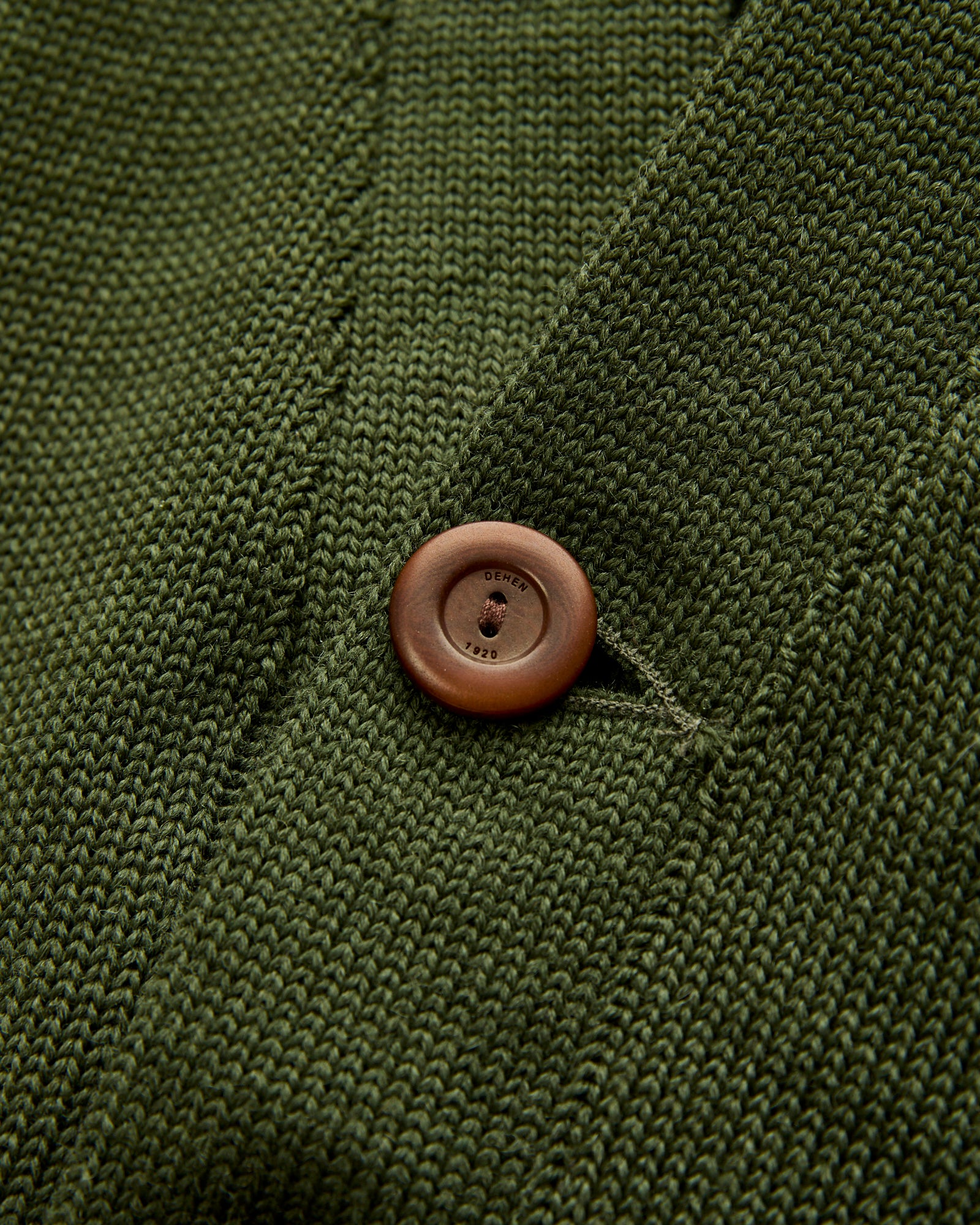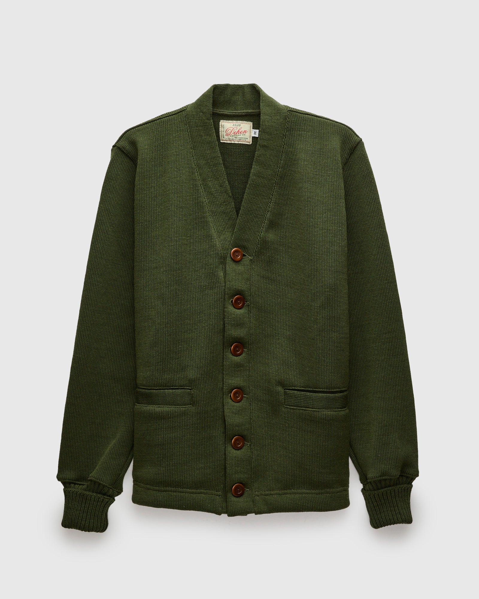 • Knit on the same machines Dehen used in the 1940s, the Classic Cardigan is a vintage repro pulled directly from the brand’s century-old archives. Made from extra-heavy worsted wool yarns, the sweater is built for long-term durability and timeless style. In true vintage fashion, the cardigan is finished with welt front pockets, 2x2 knit foldback cuffs, and heavy-duty corozo buttons.