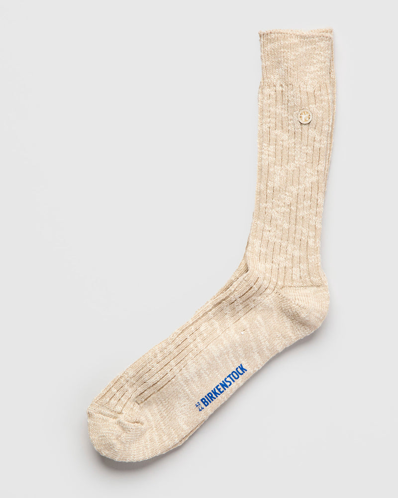 • Birkenstock Cotton Slub Socks feature a soft-breathable weave and melange yarn composition. Made in Turkey, the sock features a flexible cuff, flat toe design, with reinforcing at the toe and heel sections.