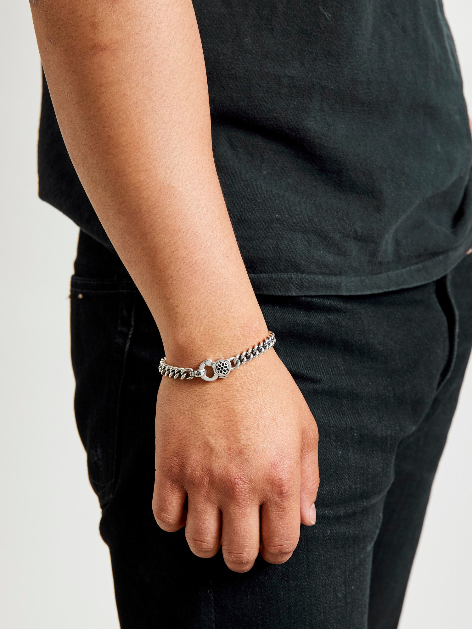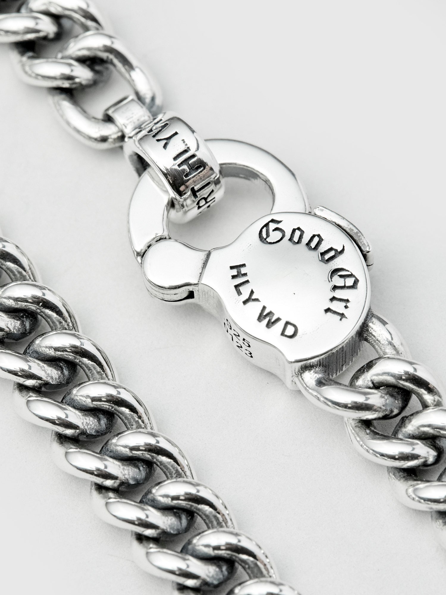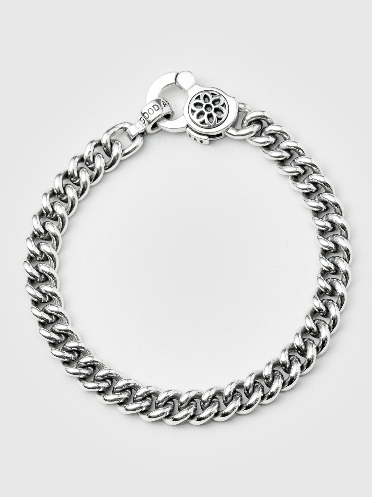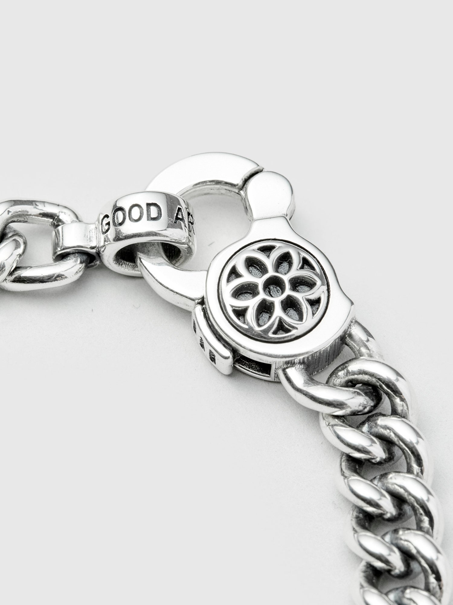 • Good Art's Curb Chain Bracelet is created through the pairing of their classic chain and the Model 9 clasp. Each chain is carefully crafted in their Los Angeles Foundry. The full circumference of hand-drawn silver is used in Good Art's chains, creating a hearty, solid, and simply beautiful link. The elegant clasp features signature Good Art details, while wearing gentle and comfortable on the wrist.