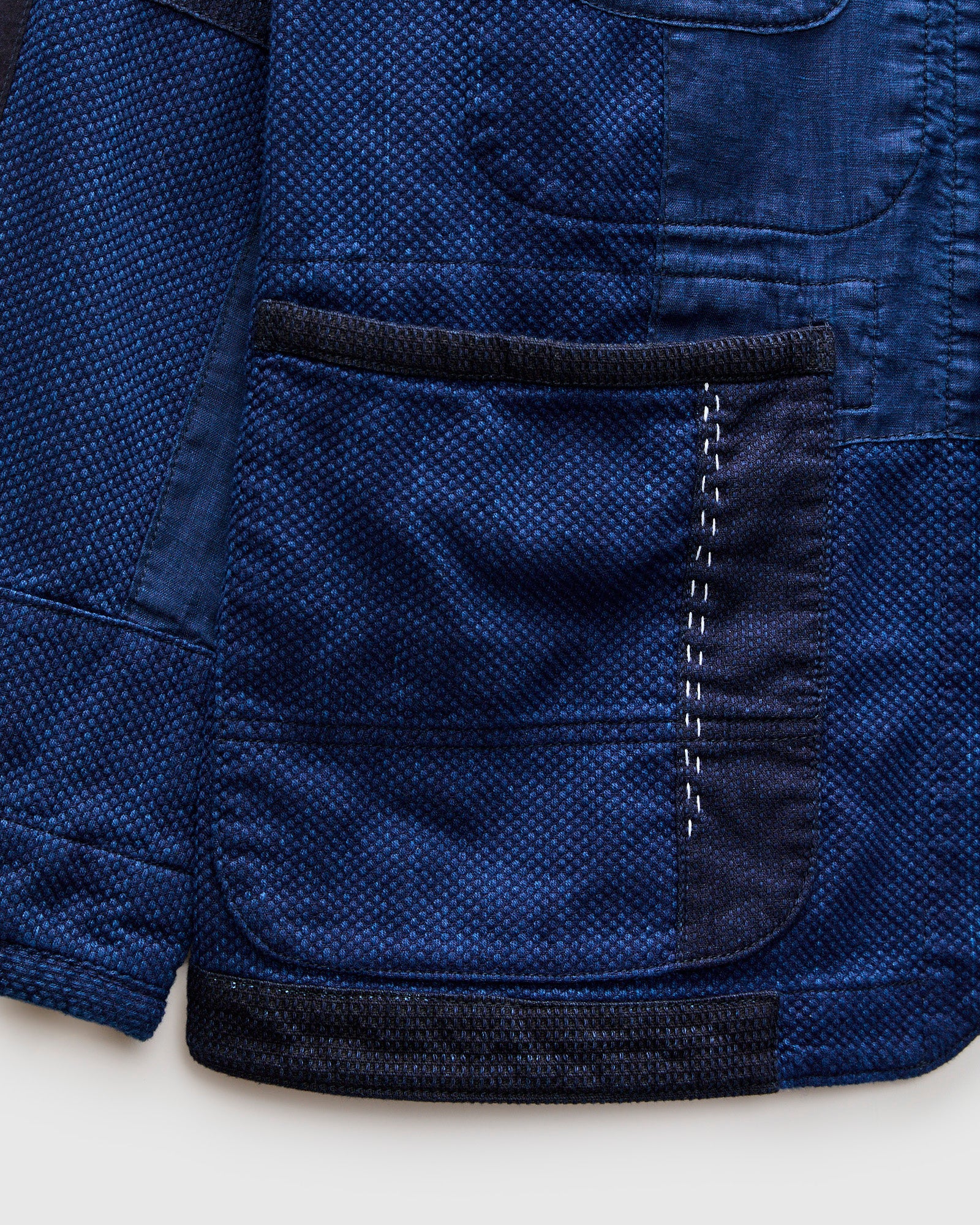 Kasezome Sashiko Nenrin Coverall Jacket in Patchwork Indigo