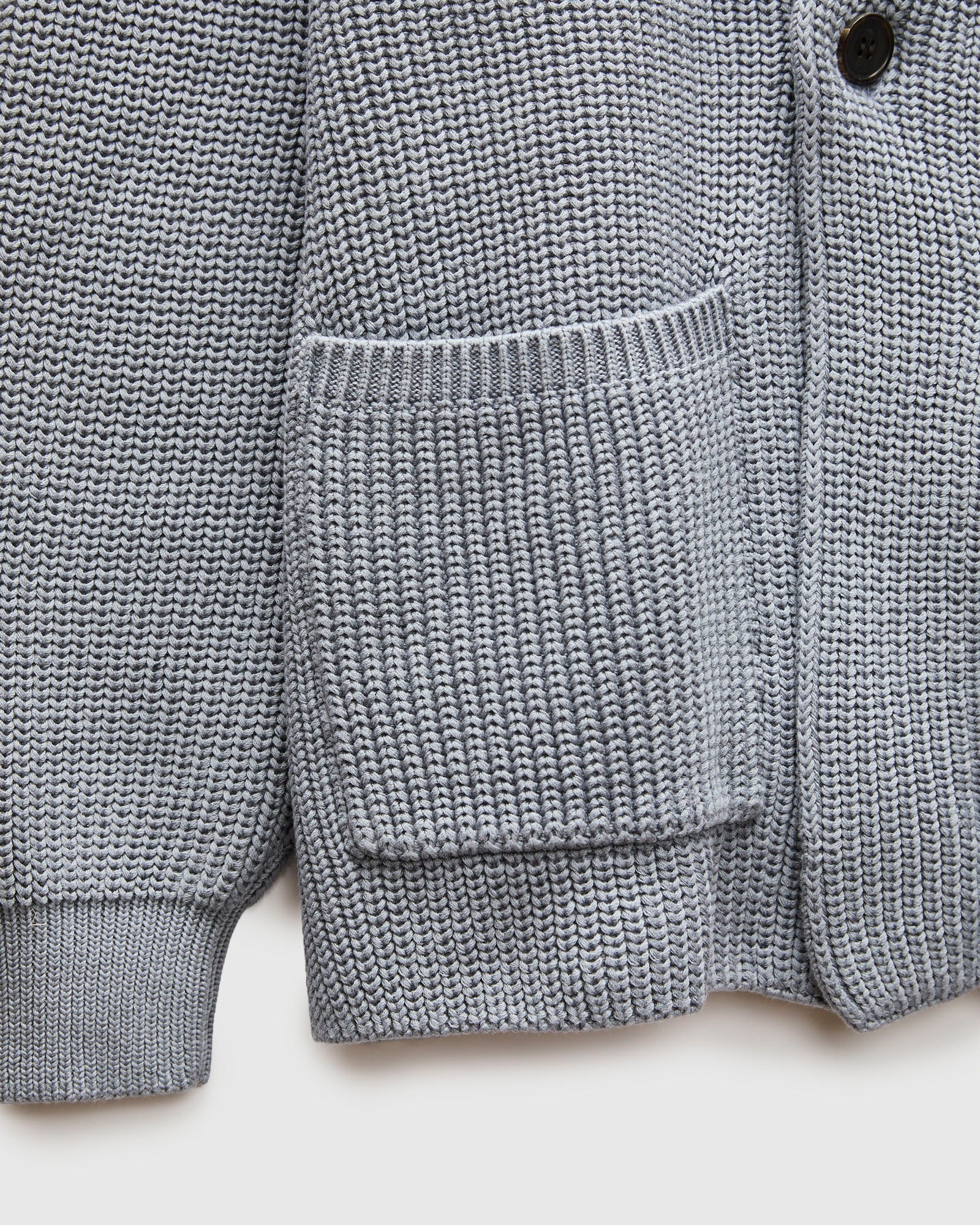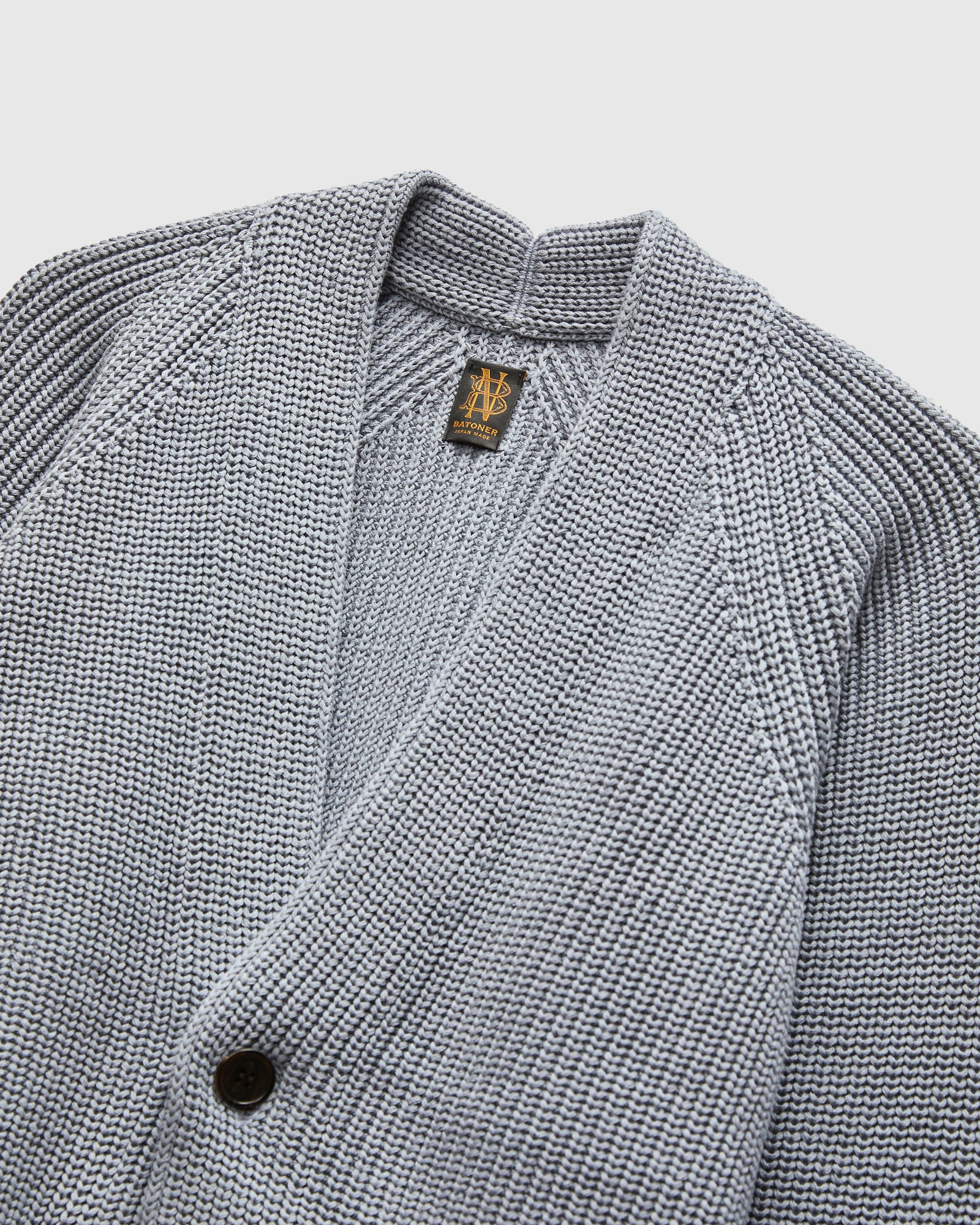 • Batoner's Signature Knit series represents decades of Japanese knitwear expertise. Knit using hand-picked Giza cotton yarns, Batoner uses specialized “SiroSpun” ring-spinning machines to produce the yarns for their Signature Knit sweaters. The SiroSpun method creates a high-tensile yarn that is stronger, smoother, and more uniform than conventional single-ply yarns. The resulting fabric resists sagging and pilling while maintaining a refined, sleek texture. Knit at a loose gauge, the sweater offers a natural stretch and substantial weight. The One Button Cardigan features a streamlined v-neck collar, one-button placket complete with handwarmer pockets at the waist.