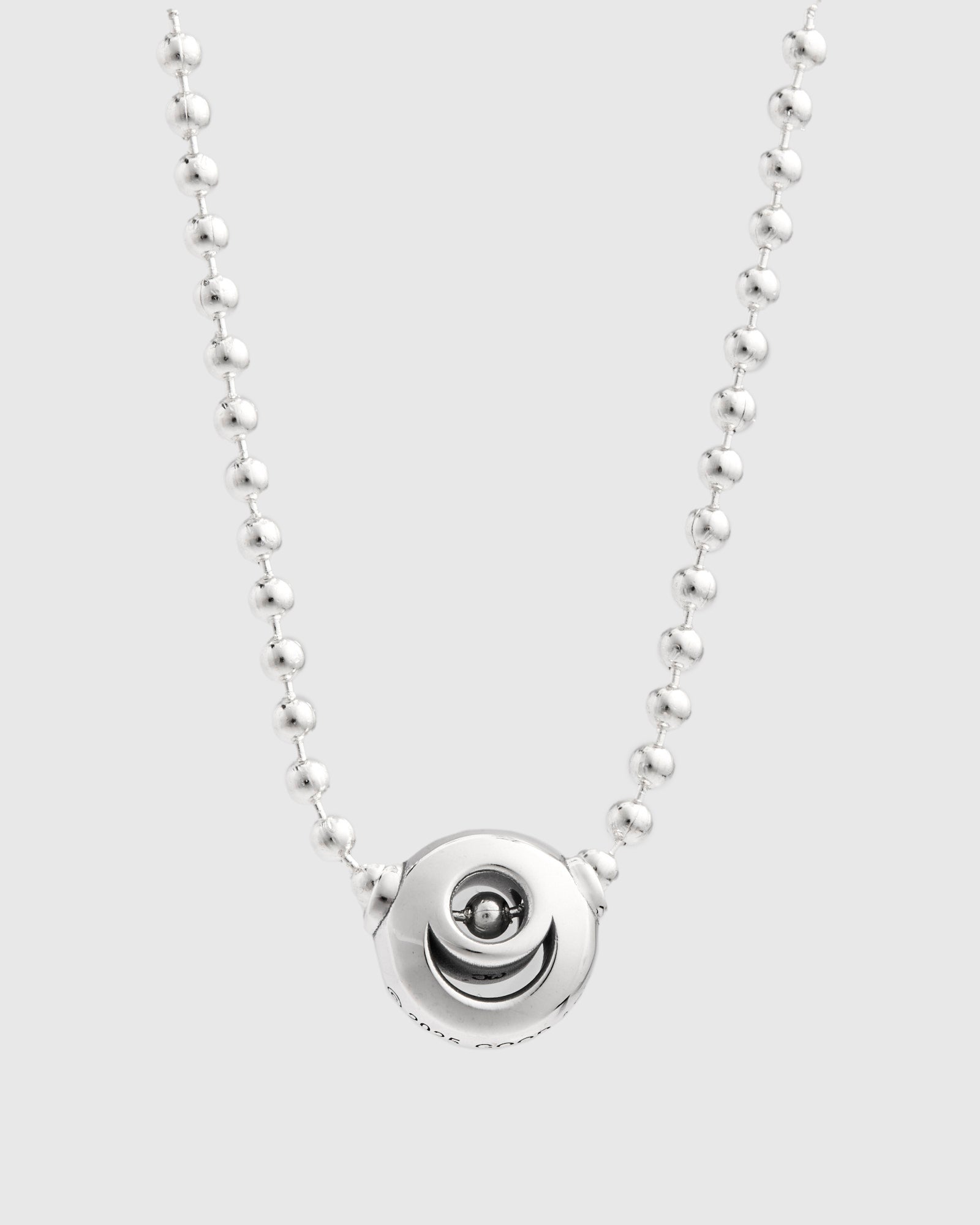 • The Smiles Necklace from Good Art features a silver cast pendant and 2A smooth ball chain. In combination, the pendant creates a playful motif with the ball-chain's beads serving as the central eye. Good Art's Ball Chain is a refined take on the beaded utility chain. Cast and finished entirely by hand, this chain has become a staple of Good Art's collection.