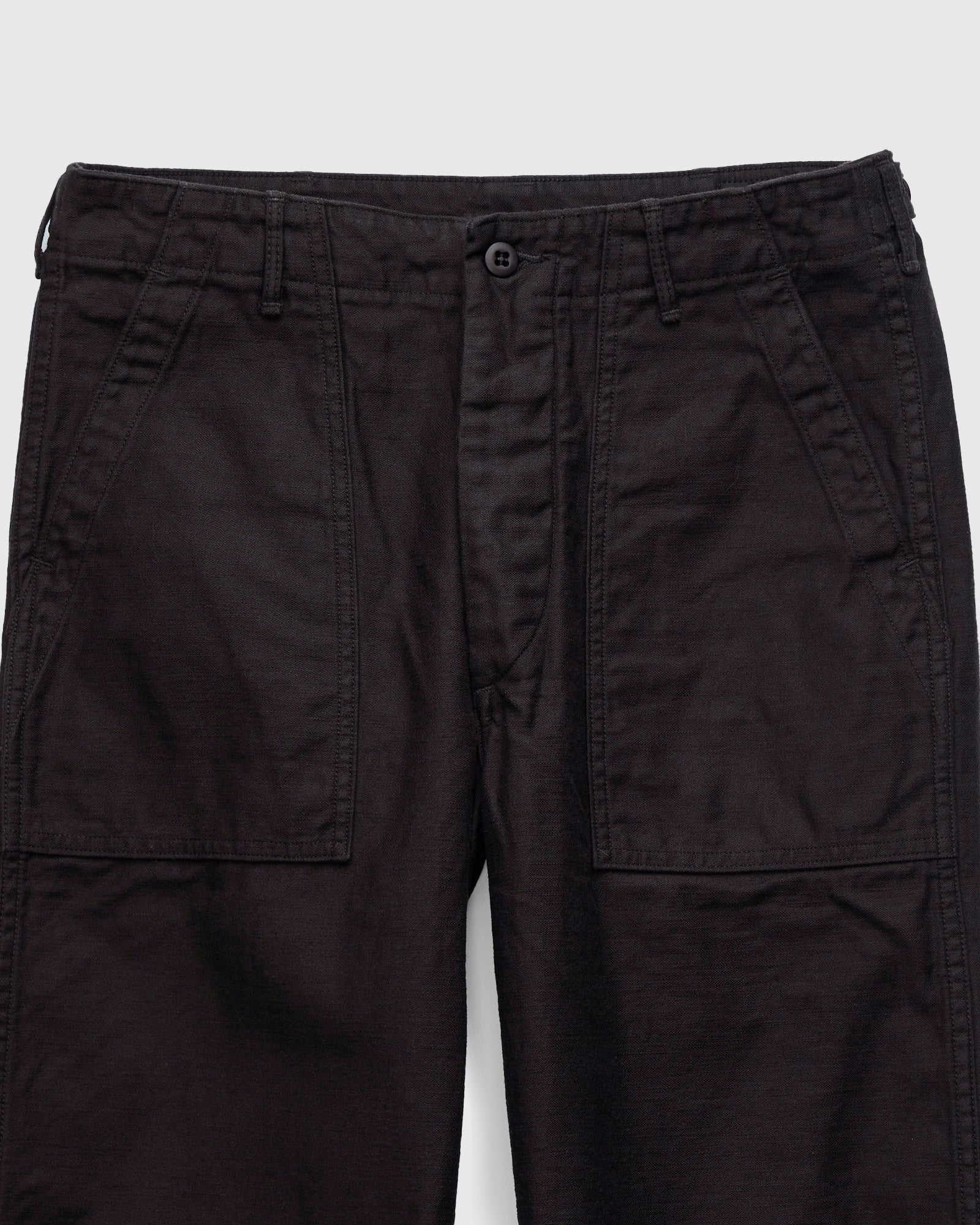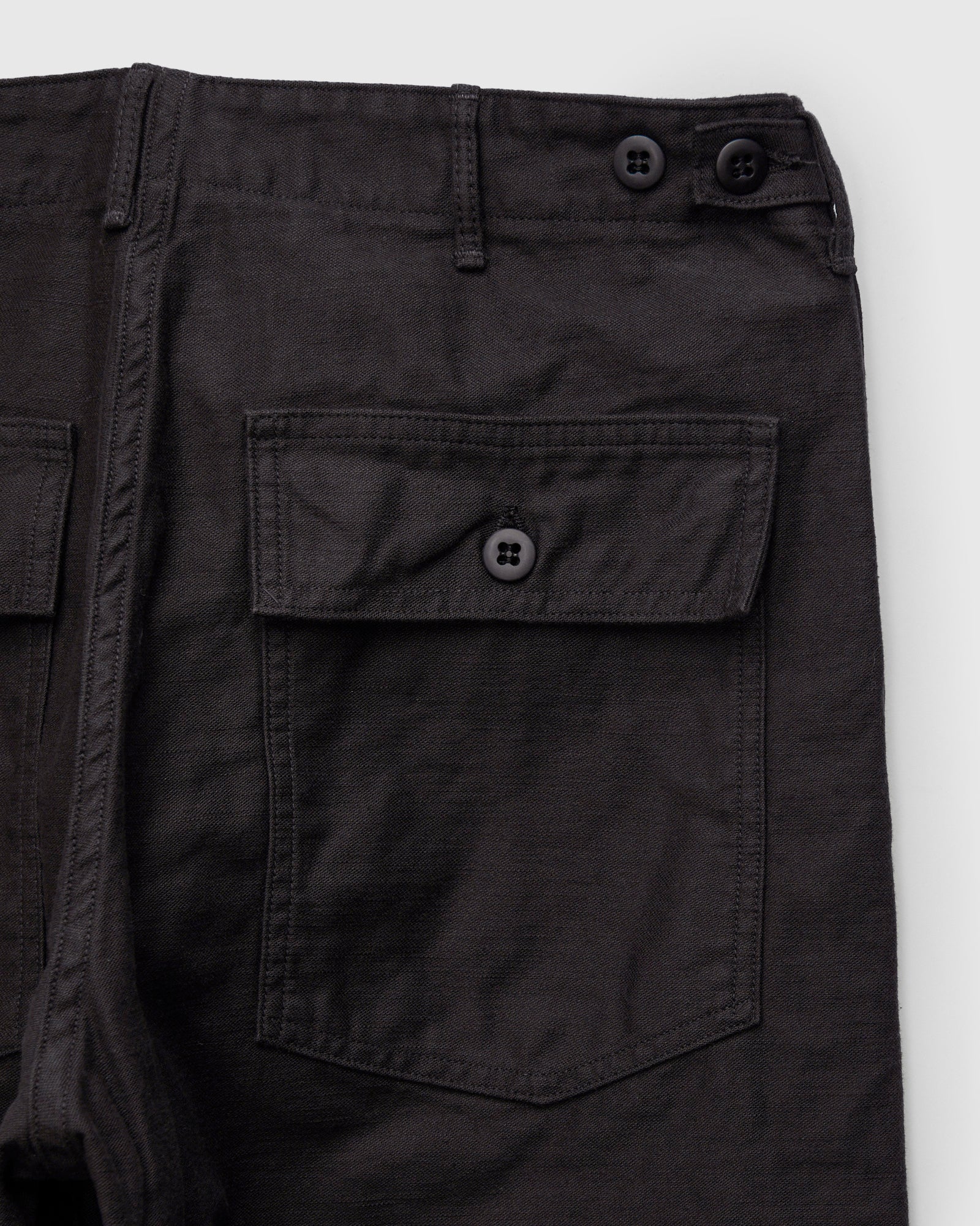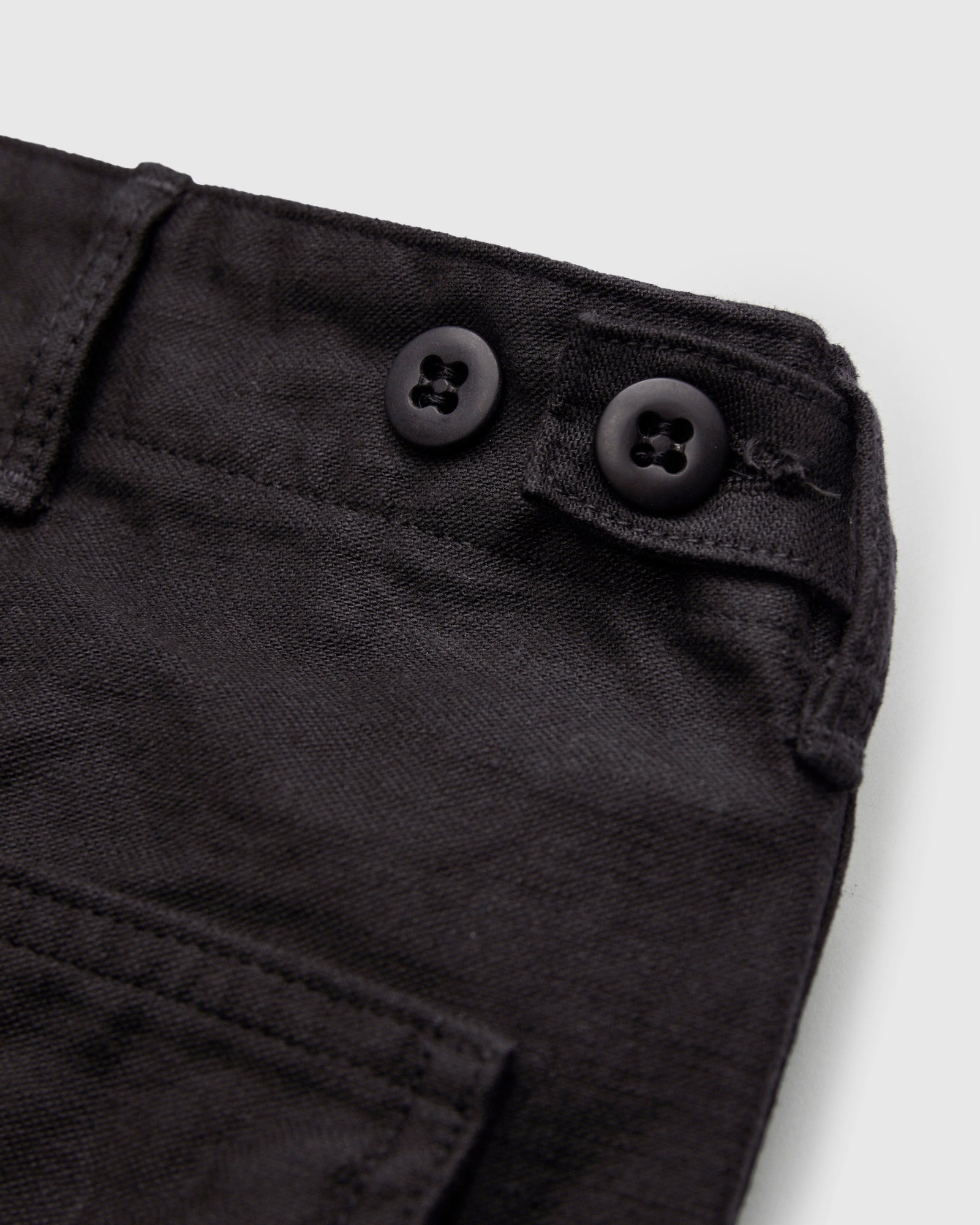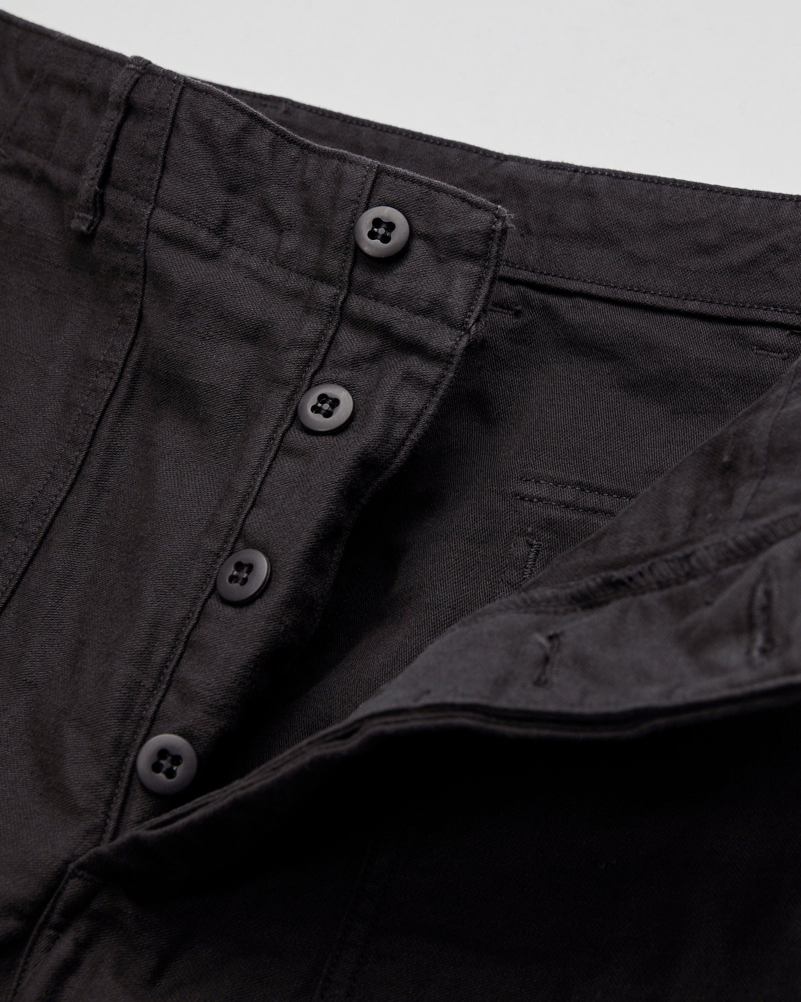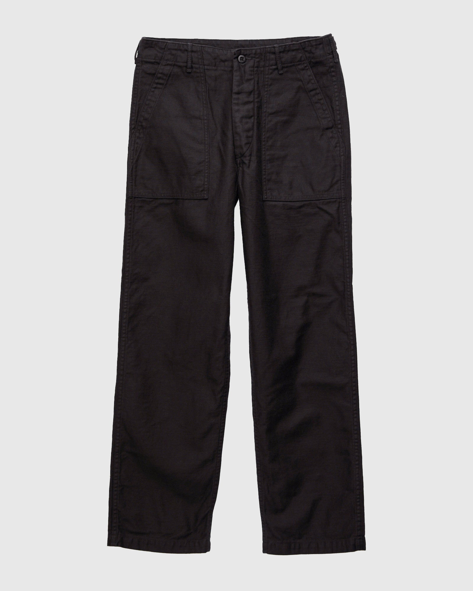• Inspired by classic military uniforms of the 70's, the orSlow Fatigue Pants are a rugged alternative to jeans. Built from a durable reverse sateen fabric, the pants feature standard issue design elements such as elongated pockets with exterior detailing and bartack reinforcements. Cut in orSlow's "Regular Fit", a wide straight silhouette.