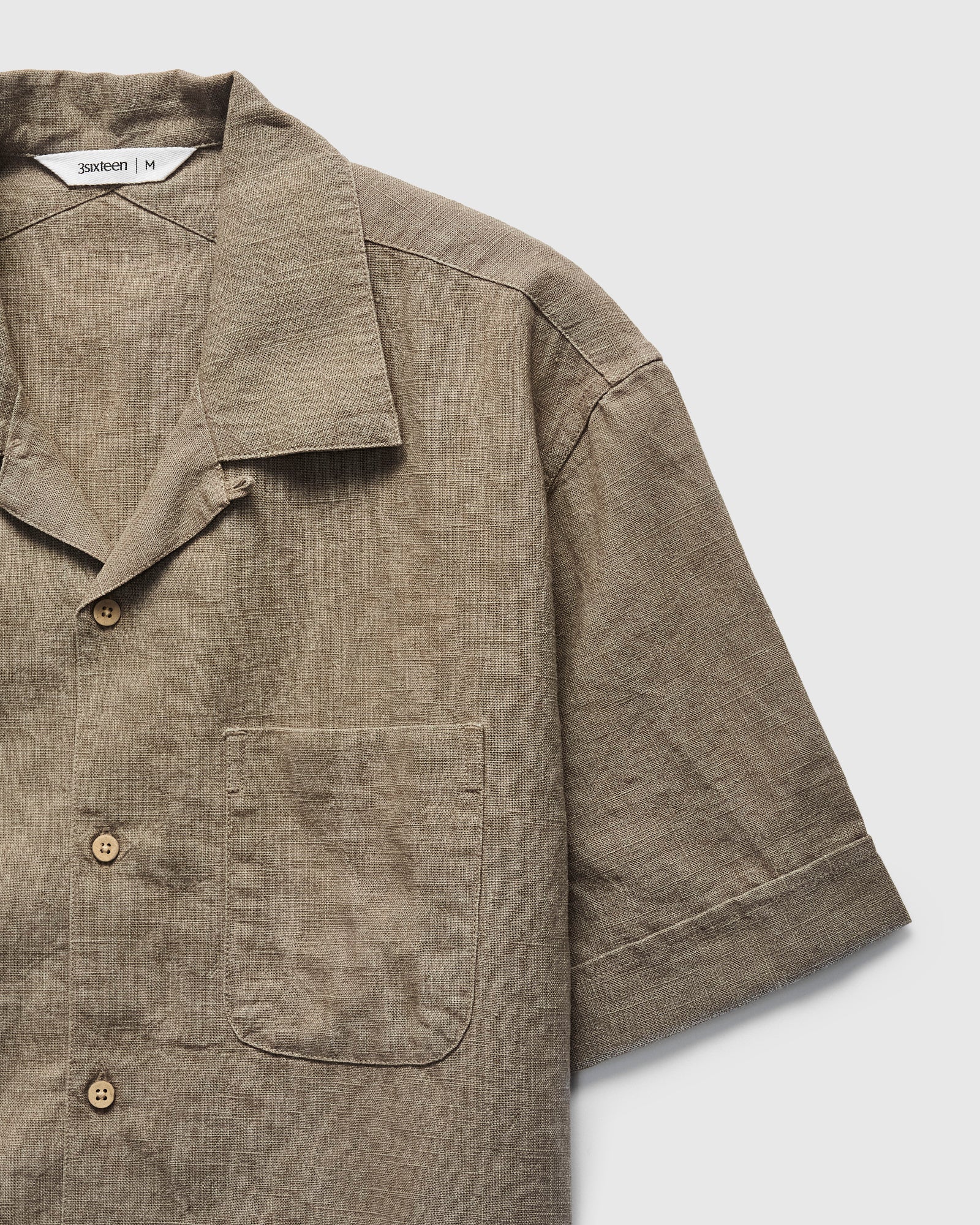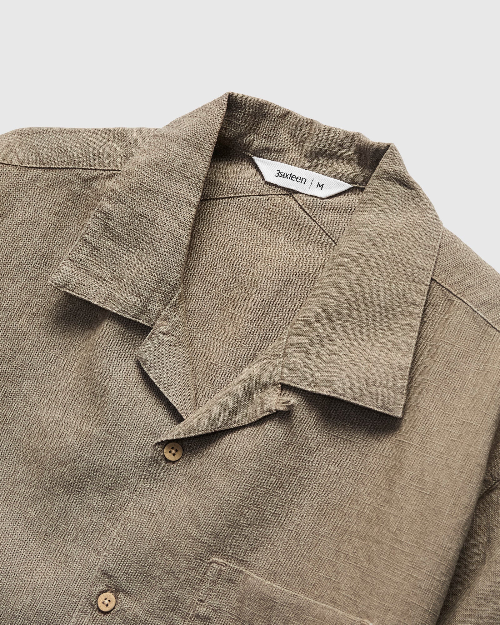 • 3sixteen's Vacation Shirt receives cues from 1950s leisure shirting, cut in an open-collar relaxed fit. This iteration is cut from a textured linen treated with an enzyme wash for a soft finish. Fitted with natural coconut buttons, chest pocket, and straight hem.