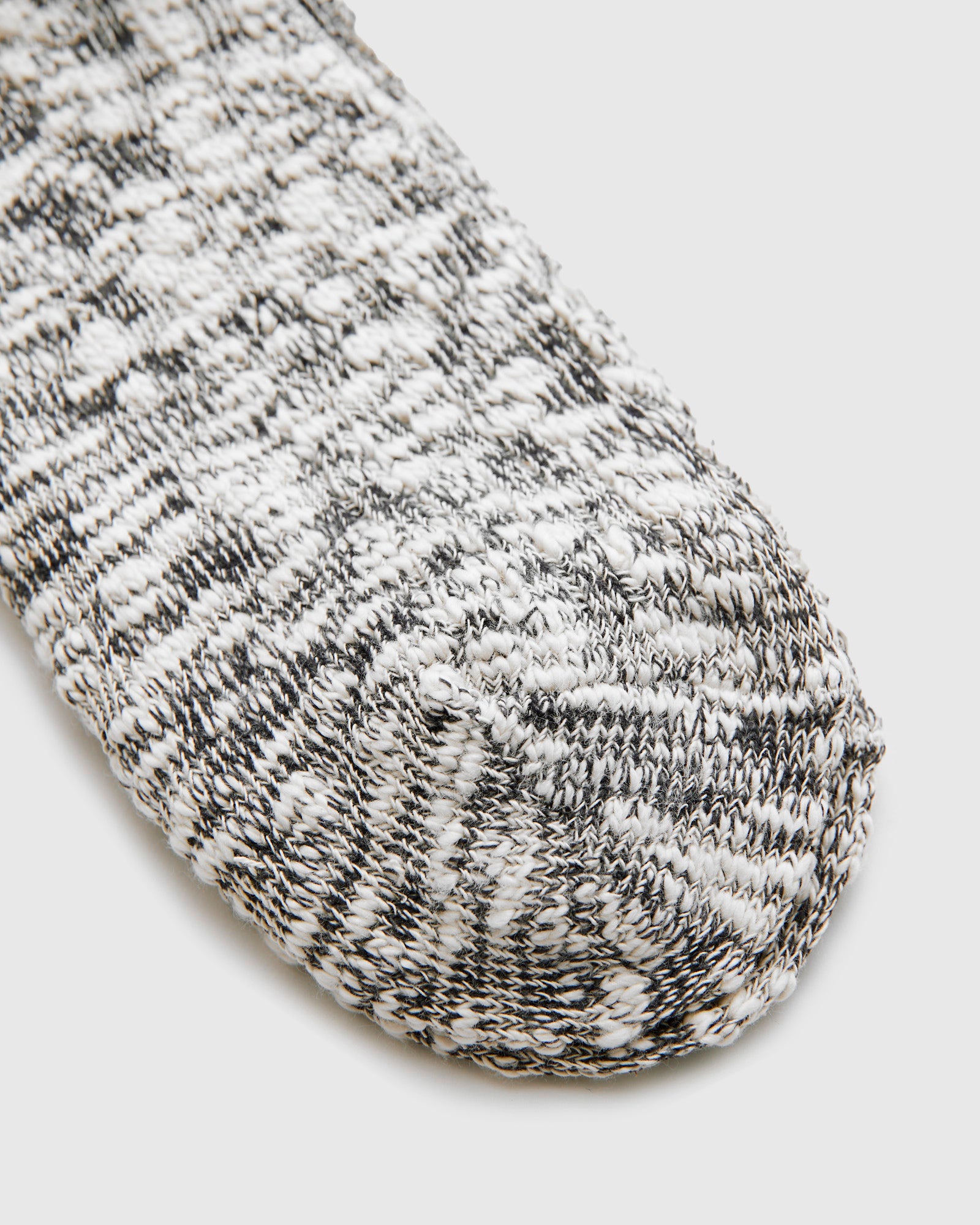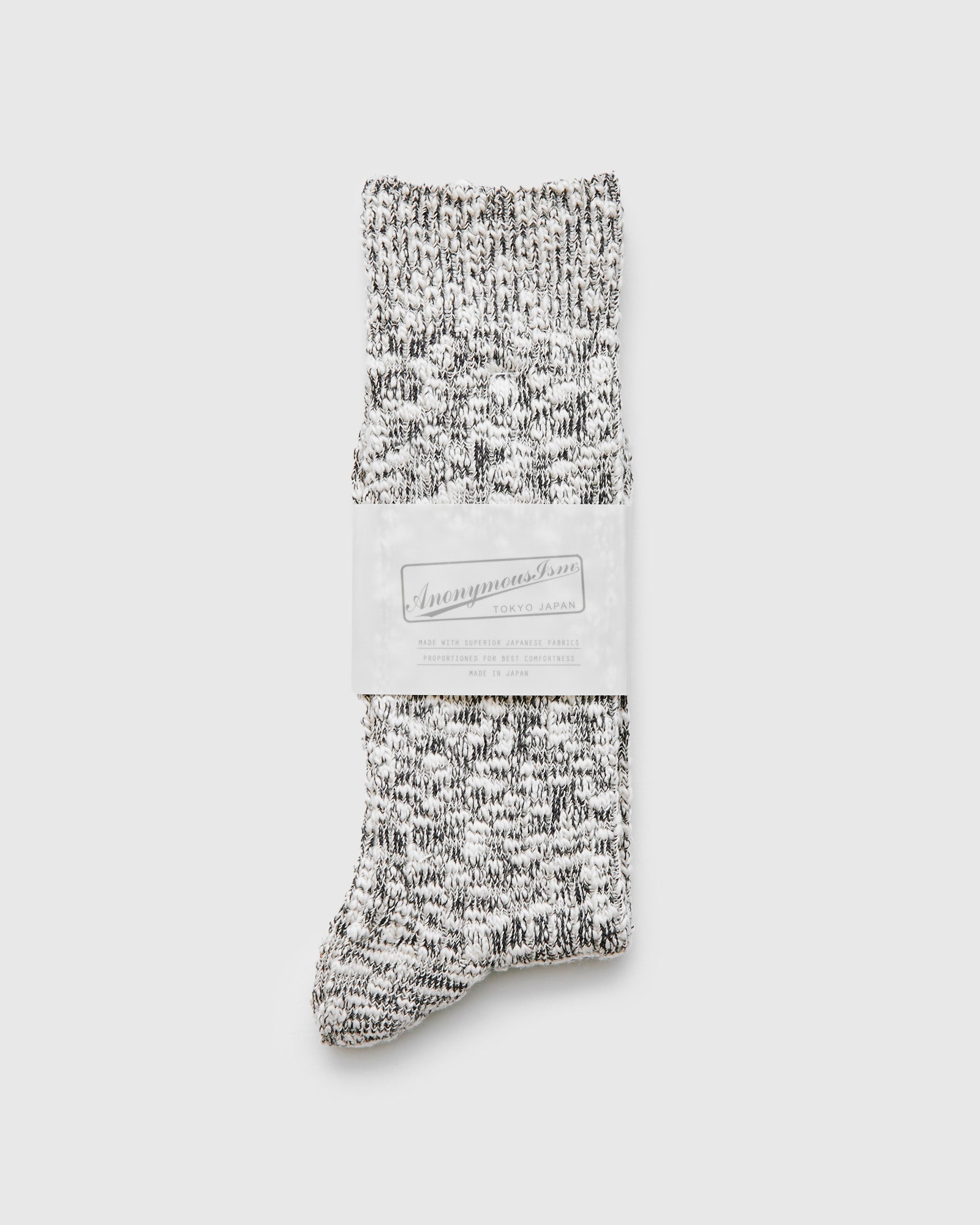 • The "Light Slub Crew" series from AnonymousIsm signature slub socks with a minimalist textured design. Woven using a slub weave yarn, the socks sport a tubular construction with ribbed knitting. Each pair of AnonymousIsm socks are expertly crafted by their team in Tokyo, Japan.