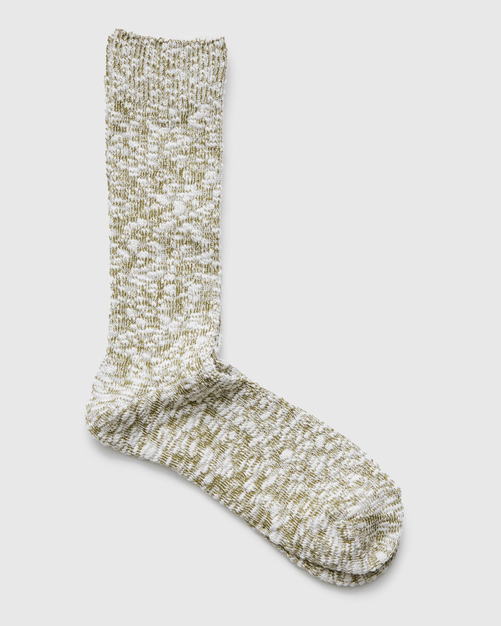 • The "Light Slub Crew" series from AnonymousIsm signature slub socks with a minimalist textured design. Woven using a slub weave yarn, the socks sport a tubular construction with ribbed knitting. Each pair of AnonymousIsm socks are expertly crafted by their team in Tokyo, Japan.