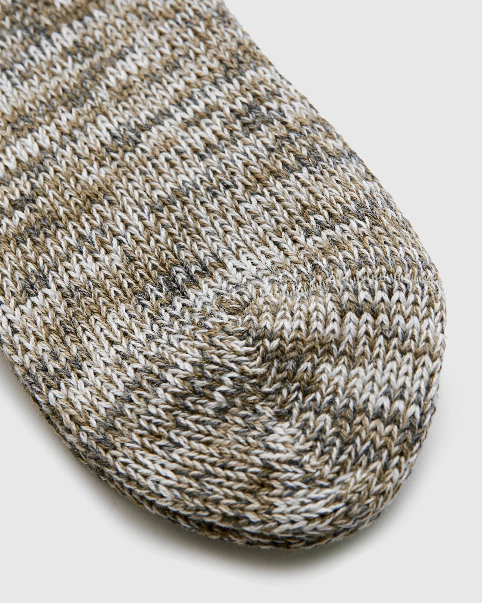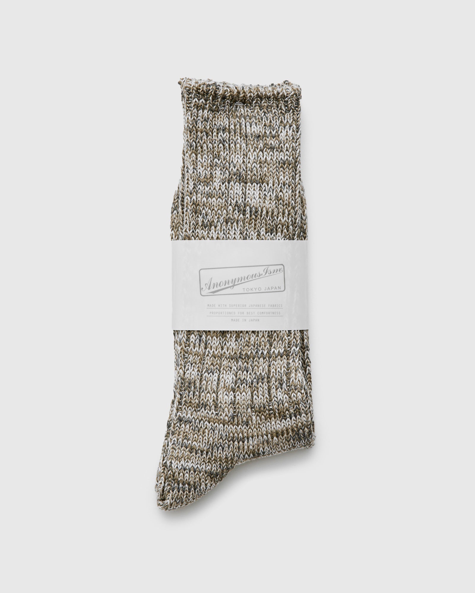 • The Melange socks from AnonymousIsm are soft full-length made from multi-colored melange yarn. The socks are woven using the brand's signature slub weave, which adds texture and pliability. Each pair of AnonymousIsm socks are expertly crafted by their team in Tokyo, Japan.