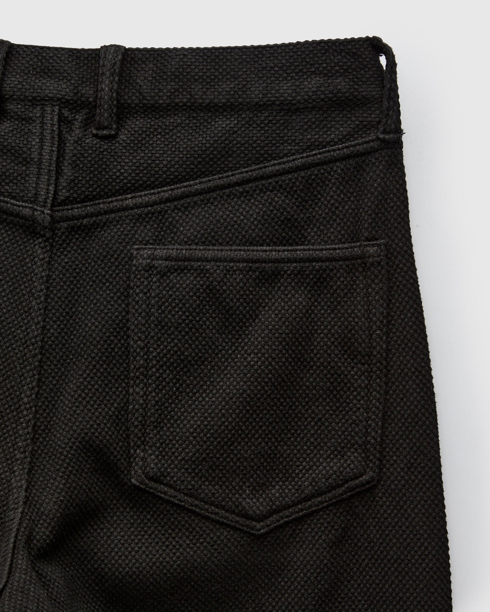 • Hand-dyed and cut in a classic silhouette, the Double Cloth Sashiko Jeans blend western workwear with traditional Japanese textiles. With roots in martial arts, the Double Cloth Sashiko fabric sports a heavyweight weave and textured surface. The pants are dyed a deep black color, yielding a soft solid tone. Fitted with traditional workwear-style detailing, and a Japanese YKK zipper fly.