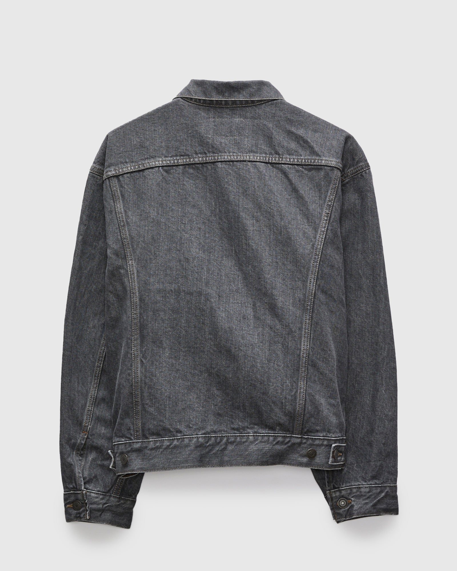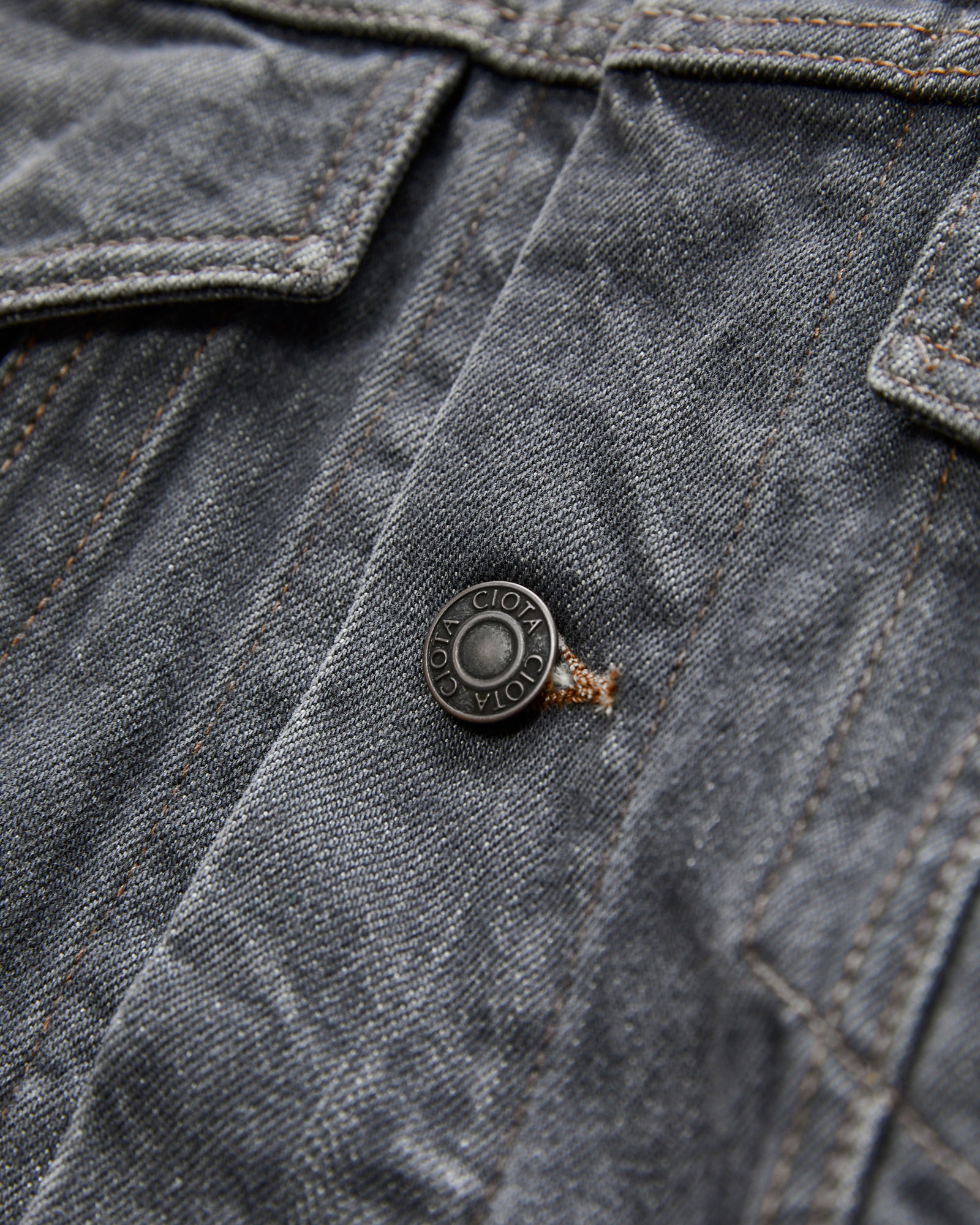 • The 4 Pocket Jacket is a modified Type-3 crafted using CIOTA's extra long-staple Suvin selvedge denim. Rope-dyed sulfur black and washed in-house, the fabric sports a rustic tone and medium grey color. The jacket features two large flap pockets at the chest, handwarmer waist pockets, and custom hardware throughout.