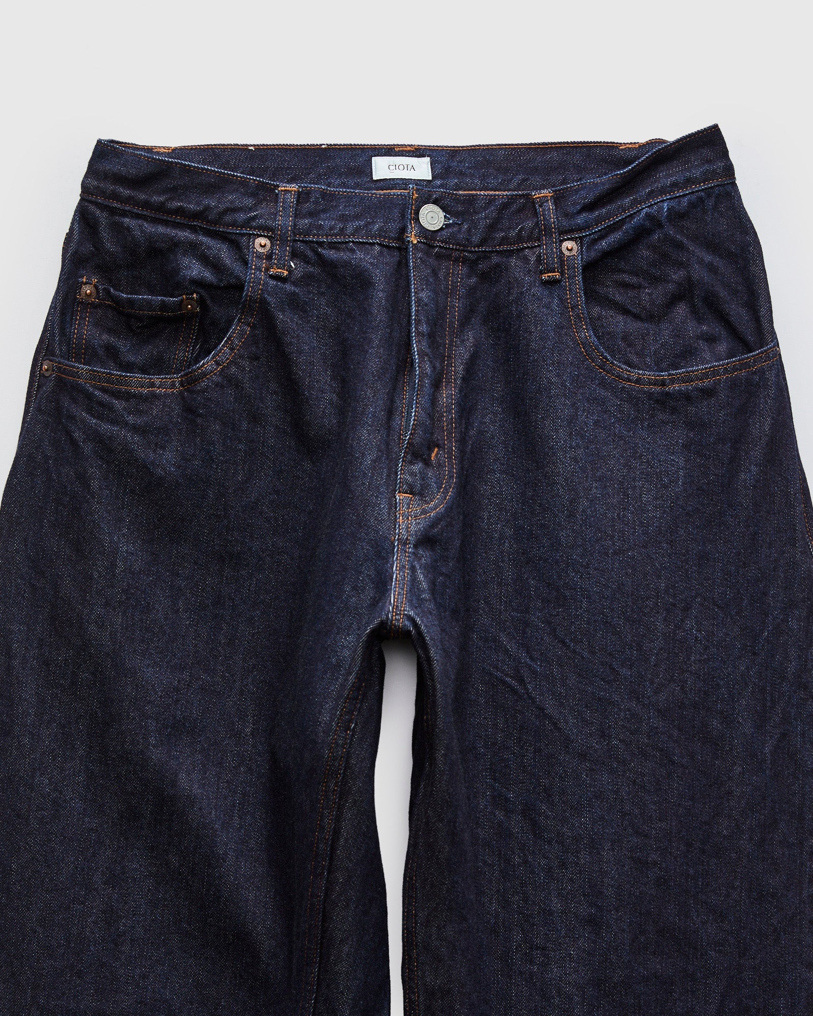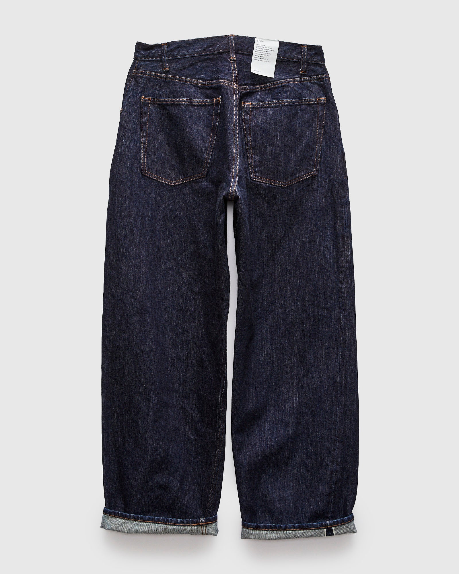 • CIOTA's Baggy fit features a relaxed, wide-leg silhouette inspired by the "baggy" loose-fit style that defined 1990s fashion. Made on vintage shuttle looms, CIOTA's 13.5oz selvedge denim is woven using extra-long staple Suvin cotton yarns, giving the fabric a dense-durable weave and soft silk-like touch. Rope-dyed in indigo, the fabric has an even tone and classic blue color. The pants are finished in a traditional five-pocket pattern with custom hardware and detailing.