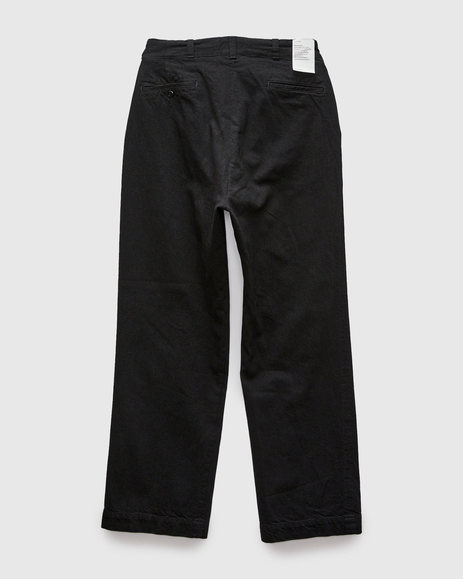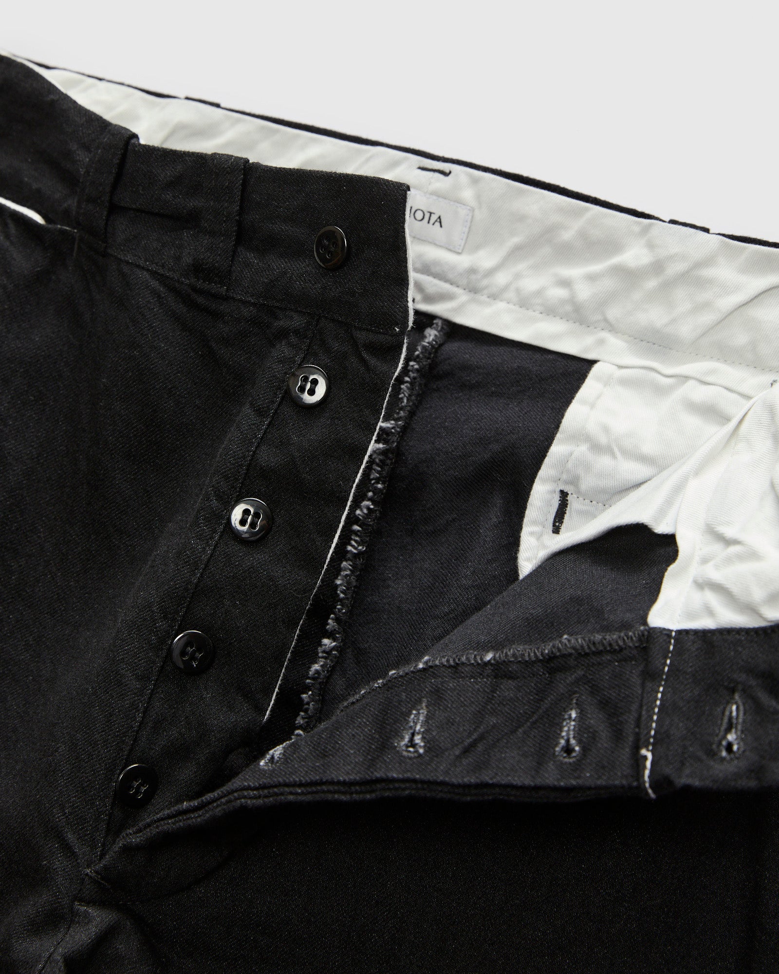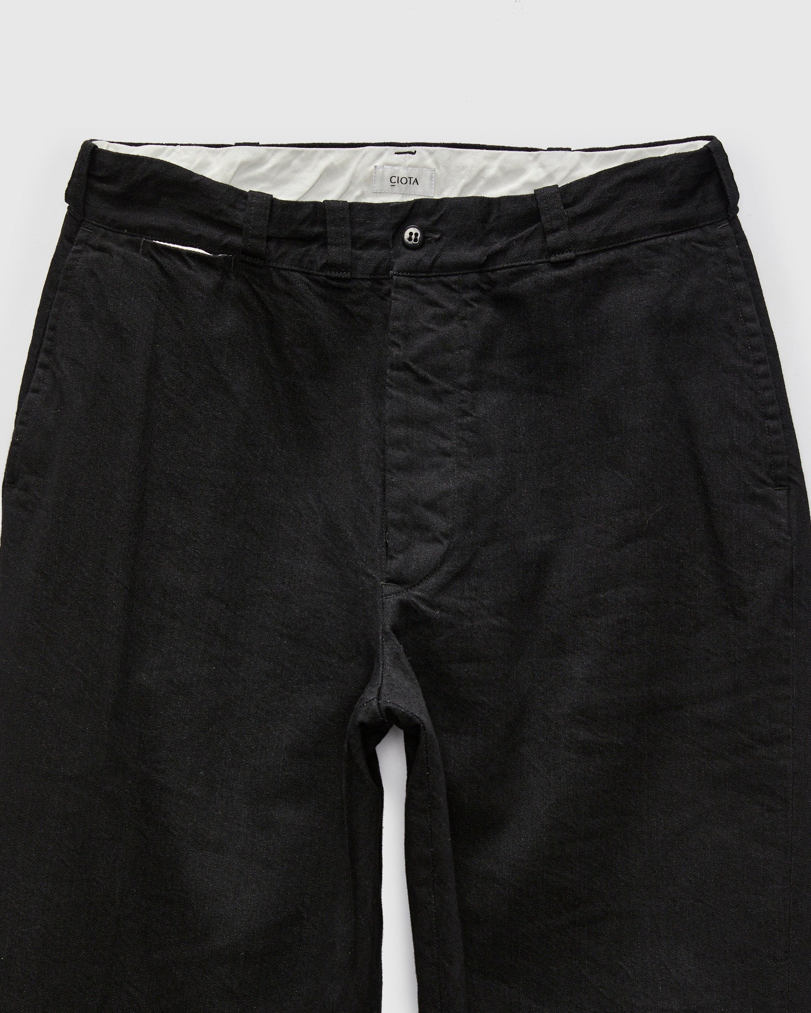 • Drawing inspiration from vintage American work trousers, CIOTA's Denim Slacks are a clean side-pocket pant made from the brand's signature Suvin cotton denim. The 11.5oz selvedge fabric is woven on old-fashioned shuttle looms using uneven slub yarns at the warp and long-staple Suvin cotton yarns at the weft. Finished with a rinse treatment, the pants have a soft, gently textured surface with an elegant drape through the leg. Finished with tucked belt loops, wide trouser hem, and button fly.