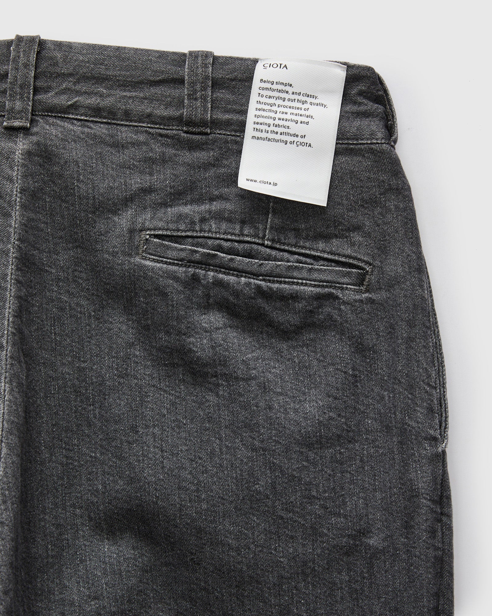 CIOTA is the product of Shiota Co. Ltd., an Okayama based sewing factory and textile manufacturer. The brand handles every step in-house, from sourcing raw materials to fabric development, design and sewing. Helmed by designer and director Masakazu Arasawa, CIOTA reimagines heritage silhouettes with a distinct contemporary sensibility.