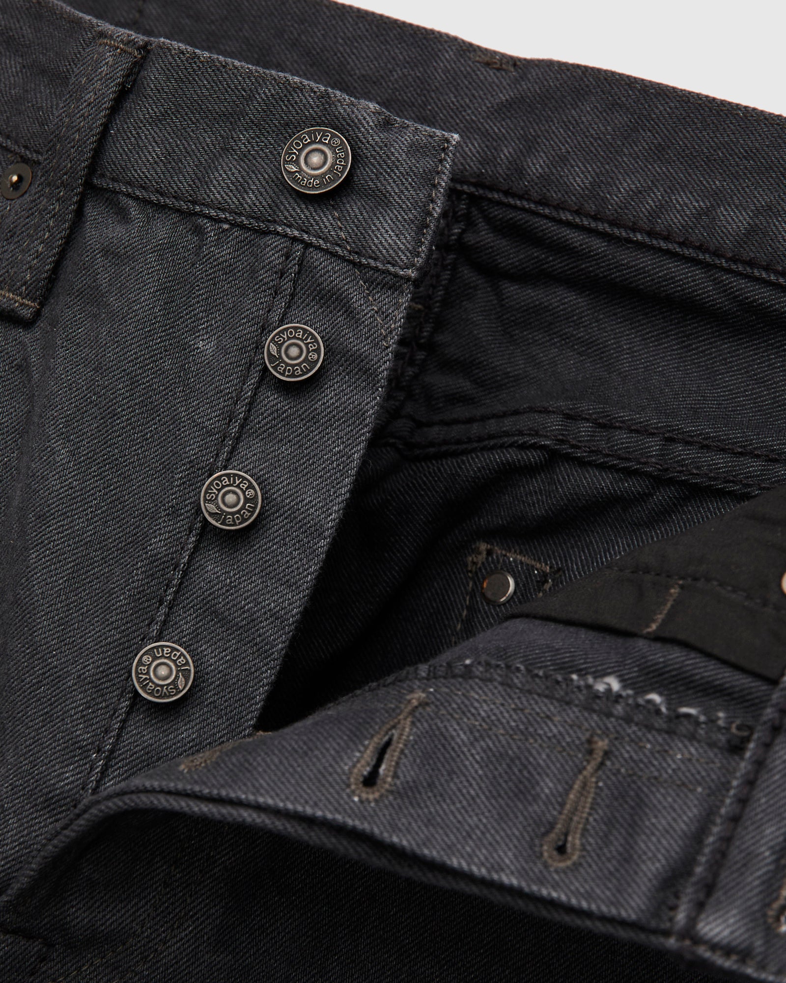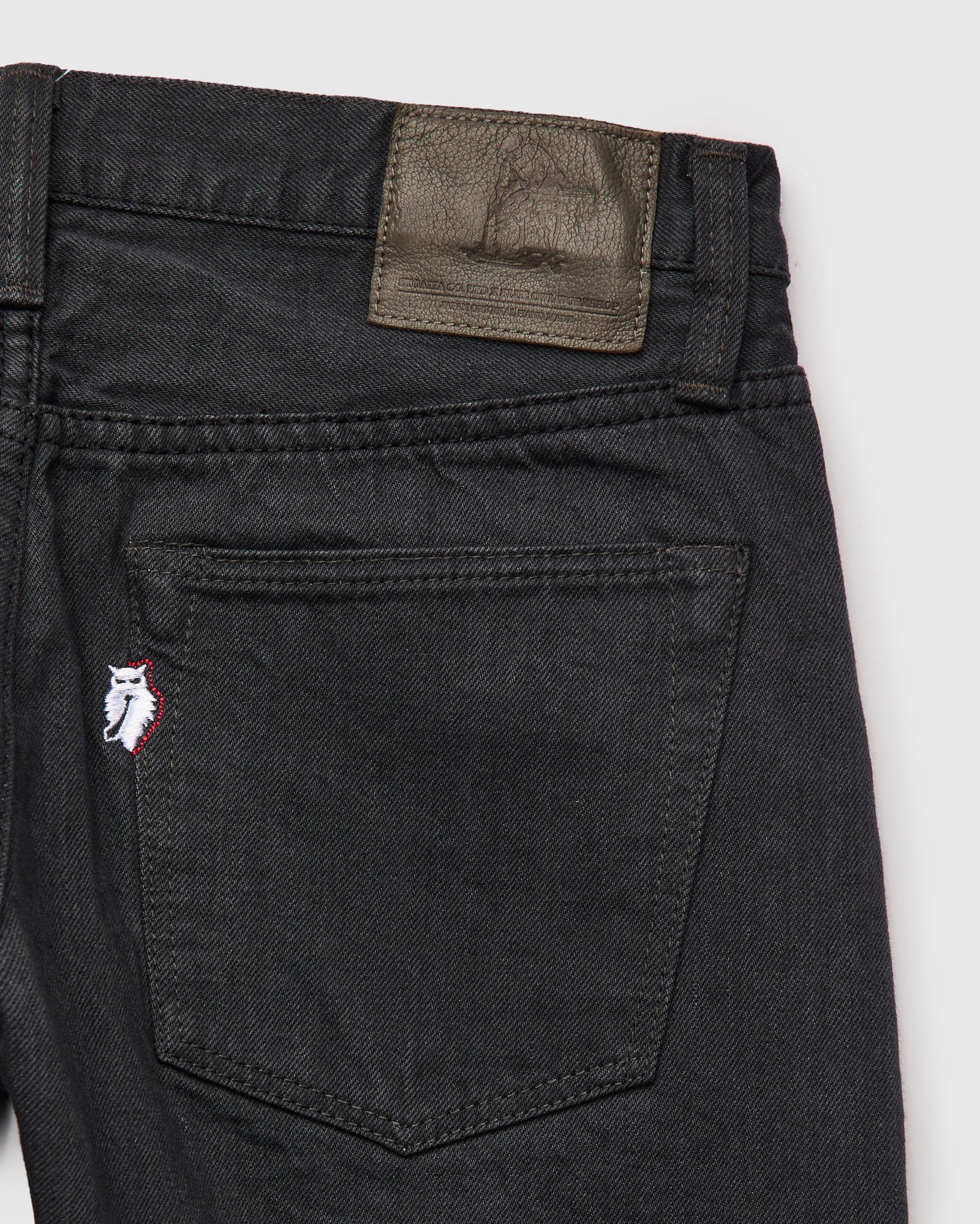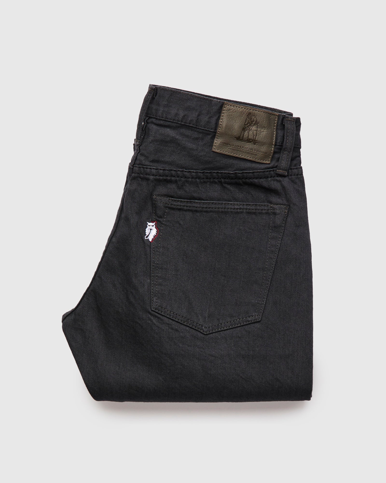 • Presenting the third installment in the Pure Blue Japan x Blue Owl collaboration series: the Moonrock Selvedge Denim. Built using Pure Blue Japan’s signature 14oz rinsed selvedge denim, this version features a charcoal grey warp and sulfur black interior weft. With wear, the jeans will develop a high-contrast fade pattern that highlights the fabric’s slub texture and grain. Finished with collaborative detailing, the jeans feature a custom grey deerskin patch and Blue Owl embroidered insignia in the style of PBJ’s indigofera leaf.