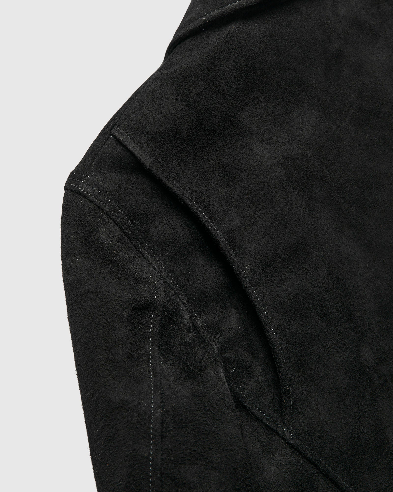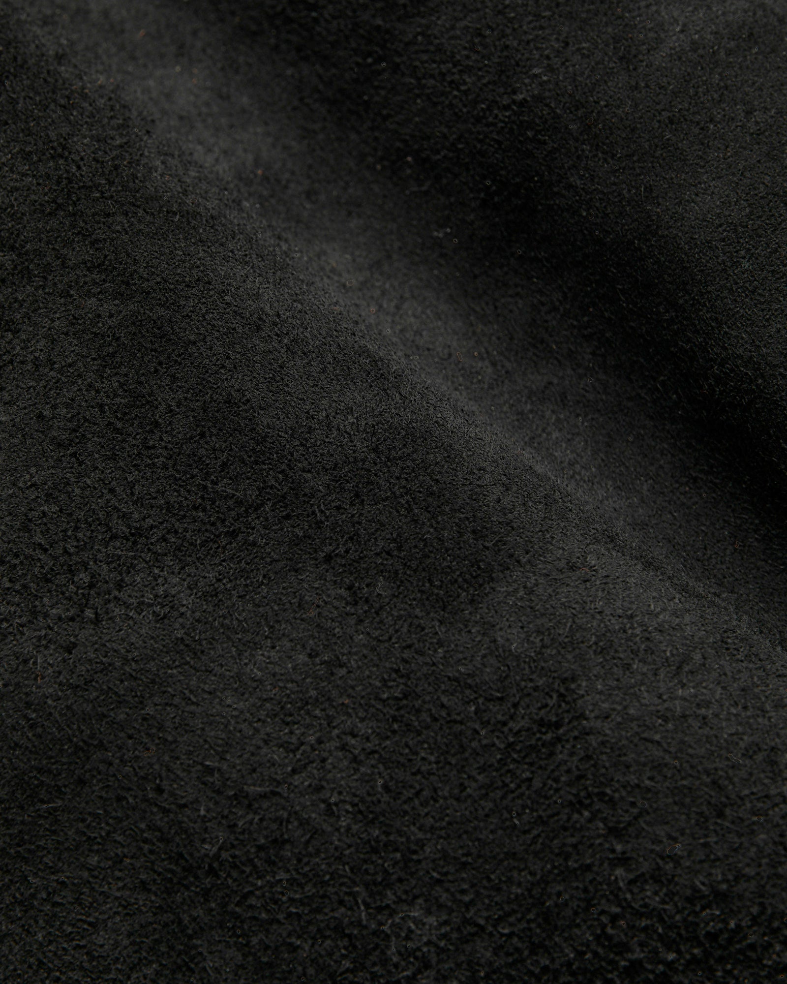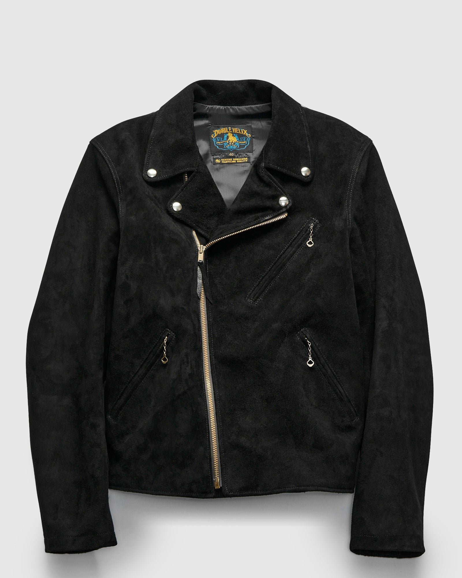 • The Deviant is an asymmetrical double-riders jacket absent of traditional epaulets and waist belts for a cleaner, more streamlined silhouette. Crafted from lightweight horsehide suede, the jacket offers a soft, supple hand with a deep pitch-black color. Finished with a smooth cupro lining, interior chest pocket, handwarmer waist pockets, and antique brass hardware.