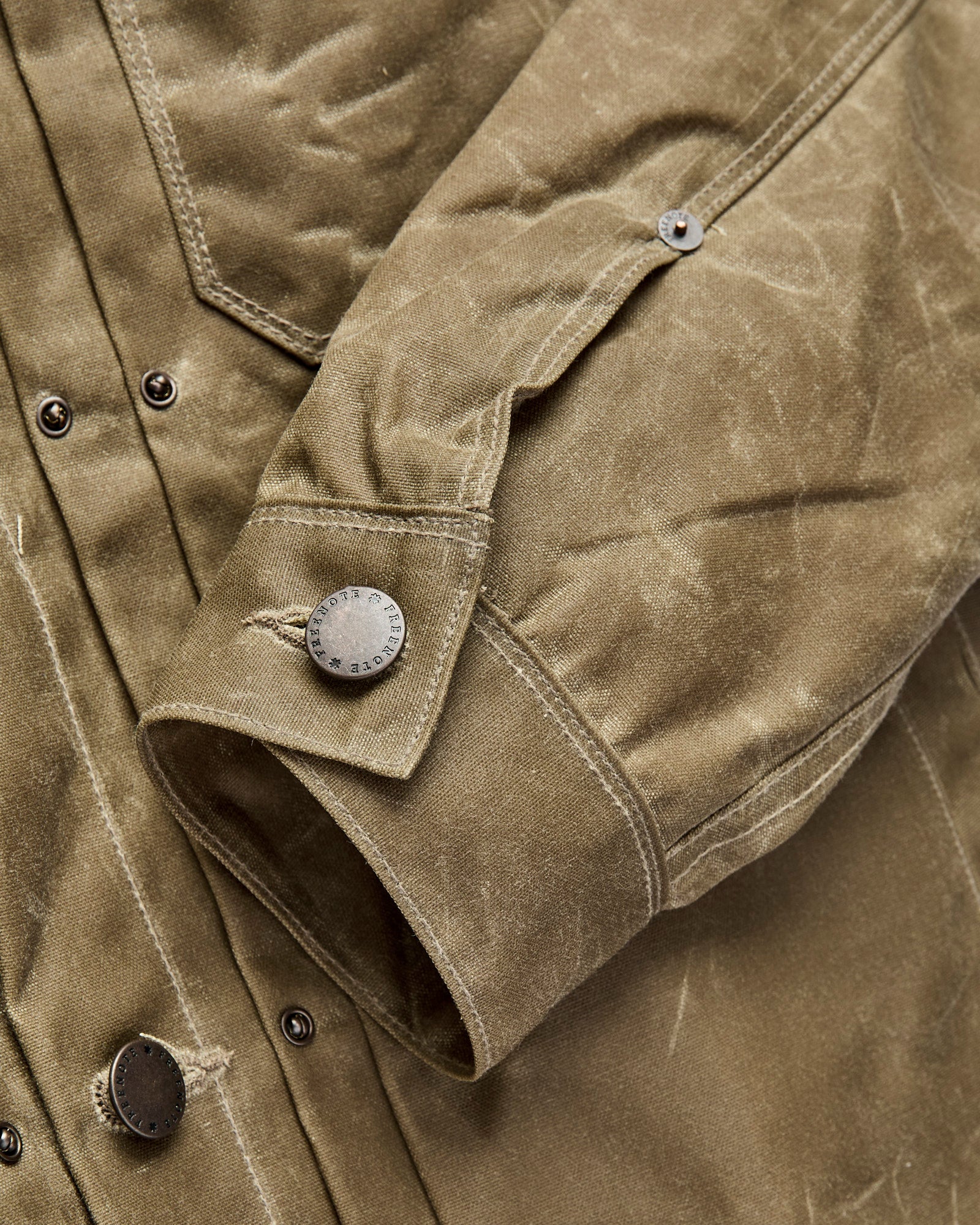 • The RJ-1 Riders Jacket from Freenote Cloth is a heritage design drawing from both ranch and classic rider jackets. Fitted with fully functional shoulder gussets, this installment is sewn using a 10oz Martexin waxed canvas for extra protection against the rain. The interior of the jacket features a Japanese flannel body liner along with fully lined satin sleeves. Finished with custom metal hardware from Kentucky, double needle construction, and an array of functional pockets throughout.