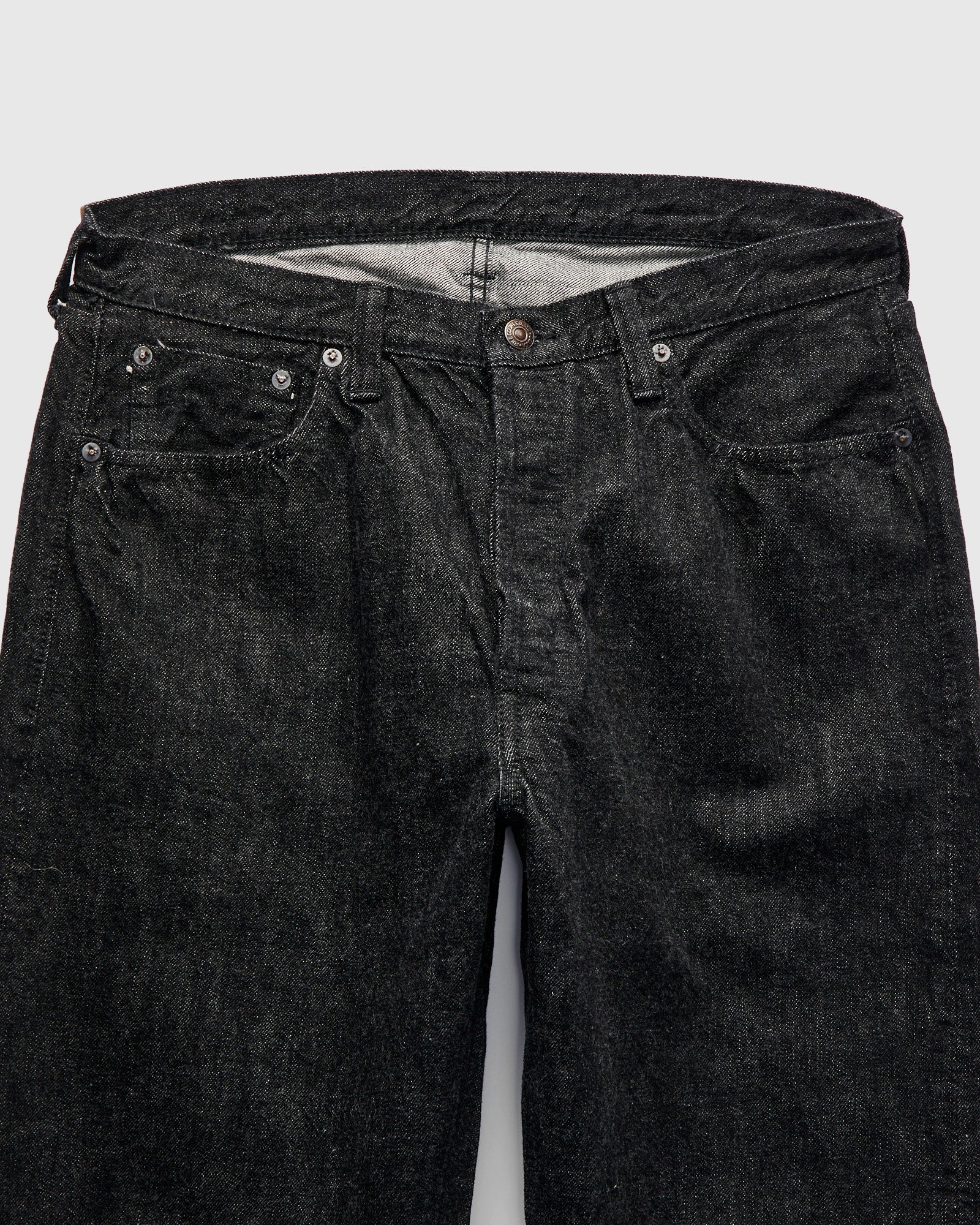 • Continuing the brand’s longstanding legacy, Fullcount’s 13.7oz selvedge denim is crafted with the same heritage-driven focus the brand was founded on. Made using long-staple Zimbabwe cotton yarns, the fabric is woven through a specialized slow-weaving process that highlights the yarns’ soft yet durable qualities. This version features a black warp and white weft weave, finished with gunmetal hardware and tonal stitching. Fullcount's wide fit is a roomy straight cut with a medium-high rise and wide leg.