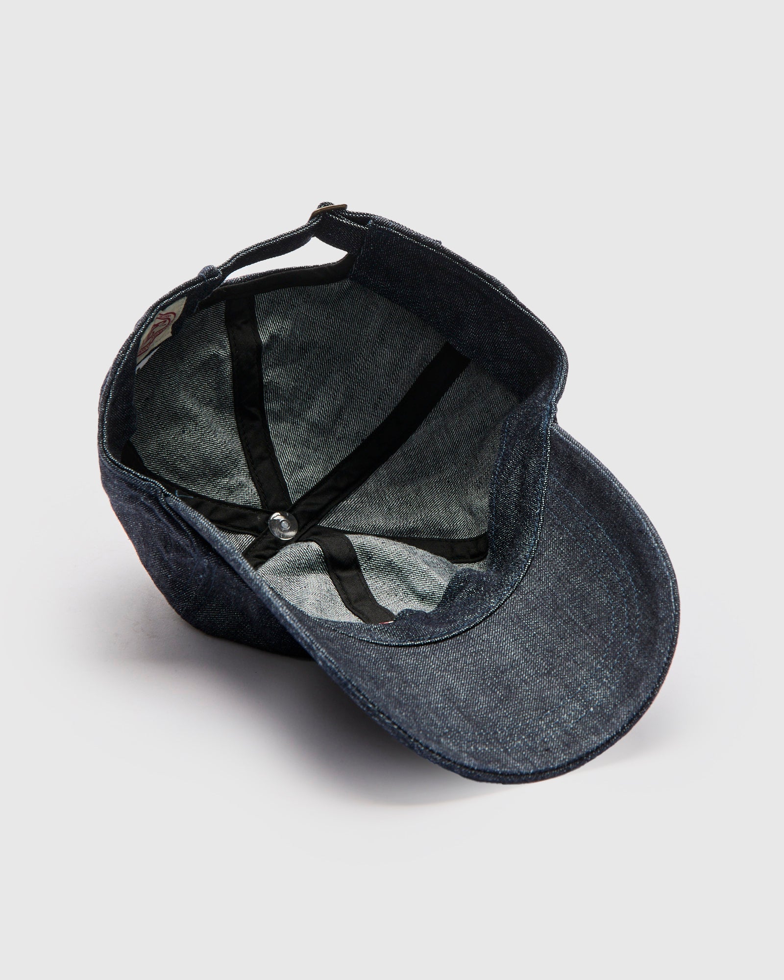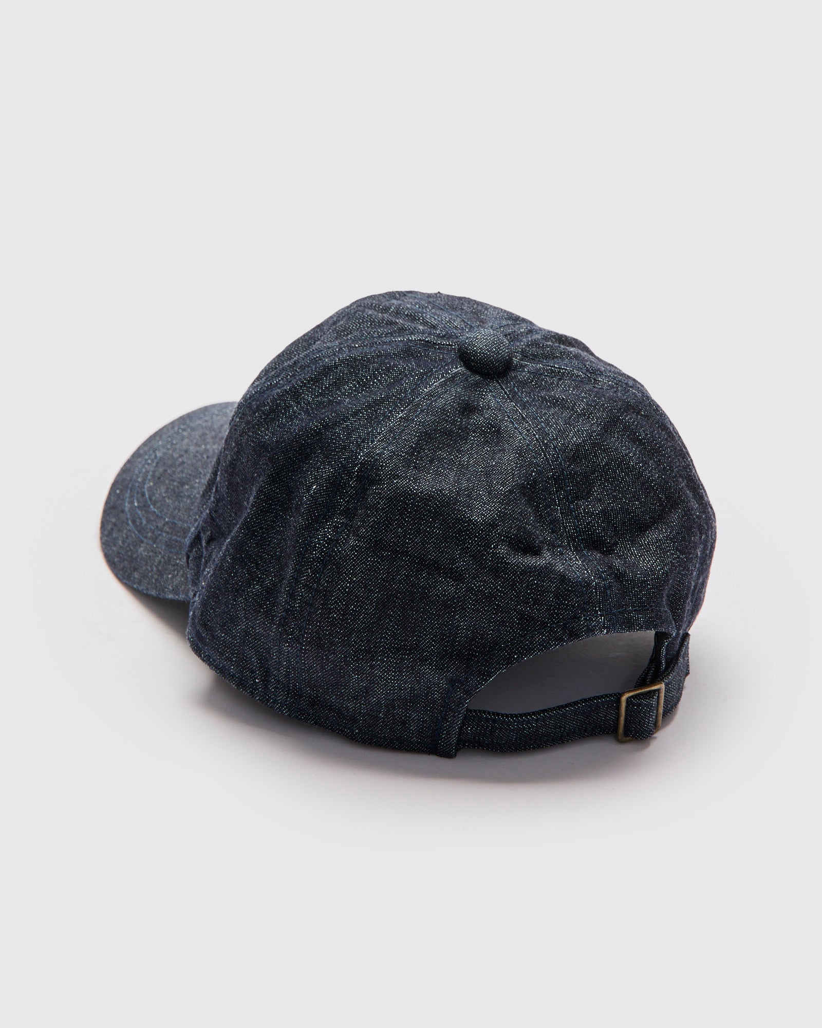 • The 6770 Denim Baseball Cap from Fullcount is crafted from 10oz denim woven using Zimbabwe cotton and features a sewn on patch at the front. Based on 1950's American baseball caps, the hat is designed with a 6-panel crown, an adjustable strap-back, and an indigo-dyed color that will age with continued wear.