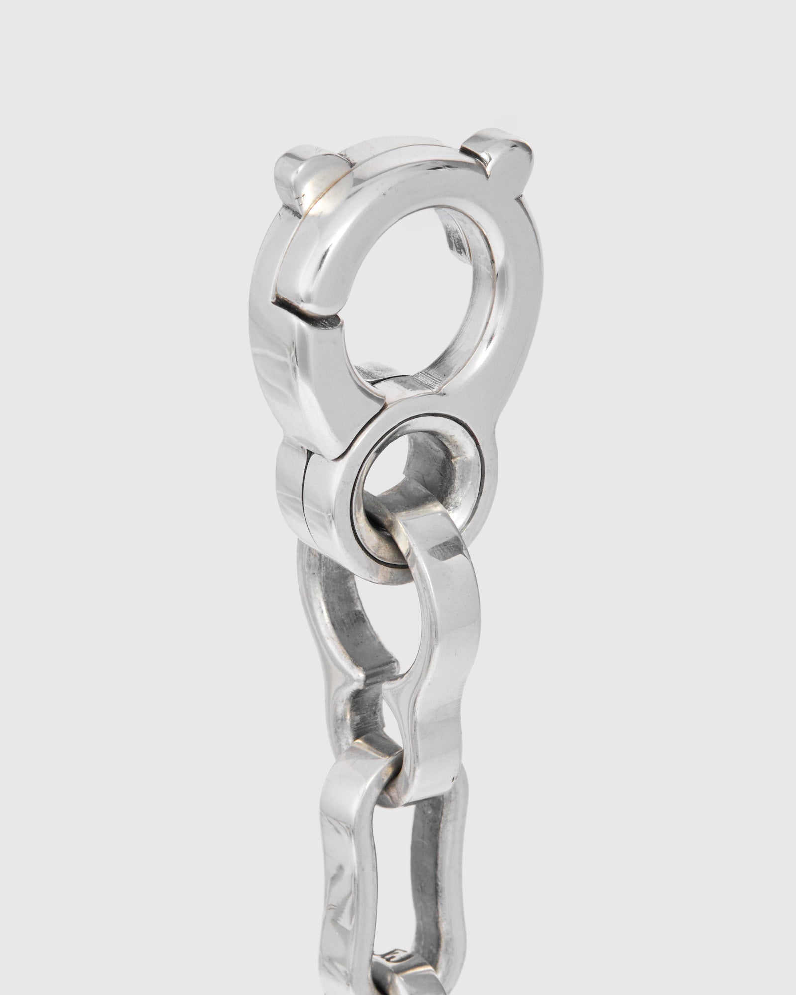 • The Bottle Chain Keychain combines Good Art's Sister Clasp and Bottle Chain motifs. Inspired by vintage Coke bottles, the Bottle Chain is a heavy-duty design cast from .925 sterling silver. Finished by hand at the brand's Los Angeles Foundry, the Keychain Include a brass split ring and custom engraving throughout.