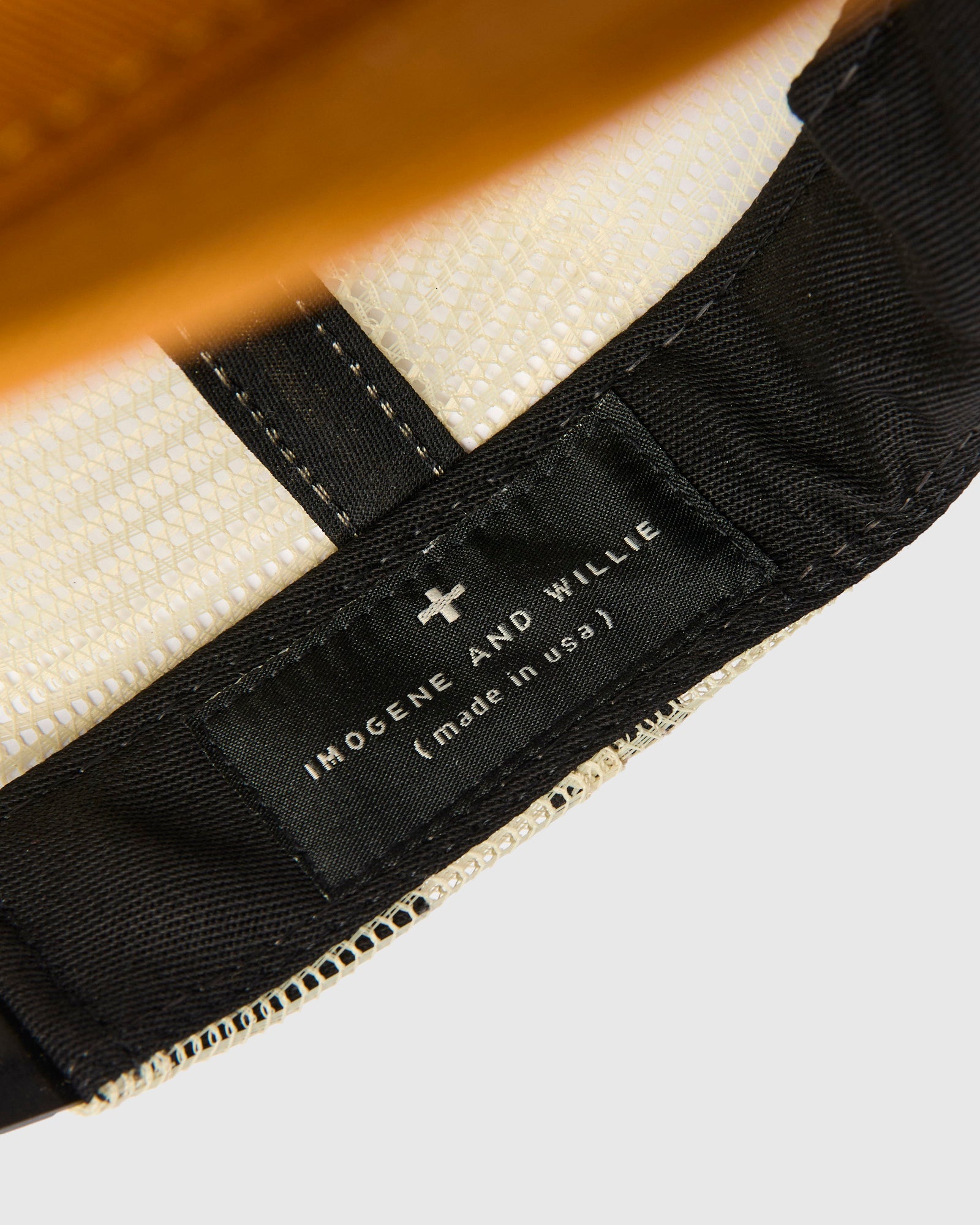 • This all-American trucker cap from Imogene + Willie offers a vintage-style design inspired by the brand's Nashville roots. Referencing old-school trucker caps, the cap sports a medium structured peak crown with mesh panelling at the back. Built in the USA with an adjustable snapback closure.