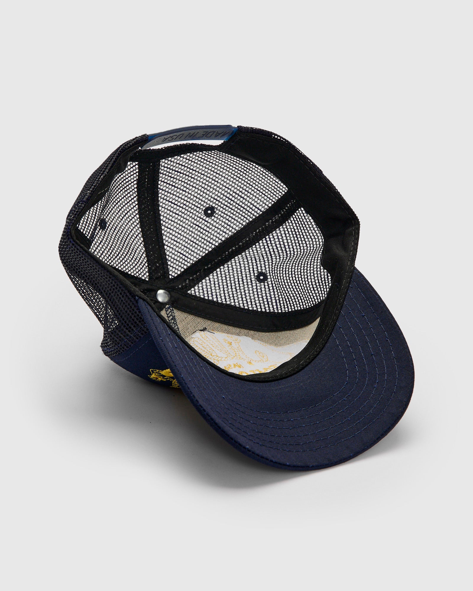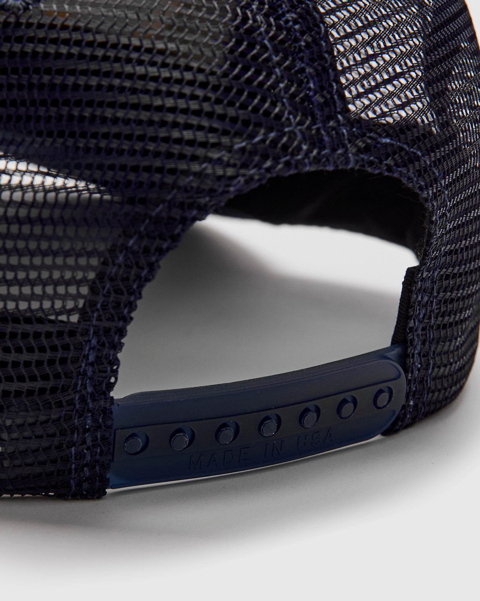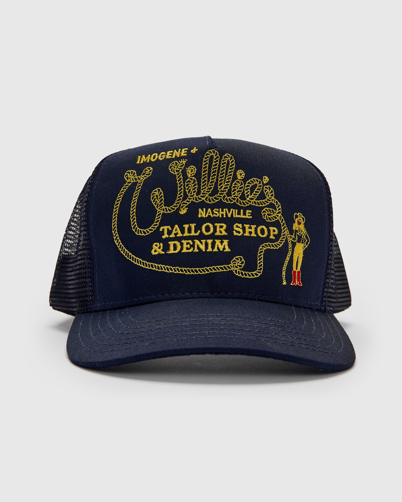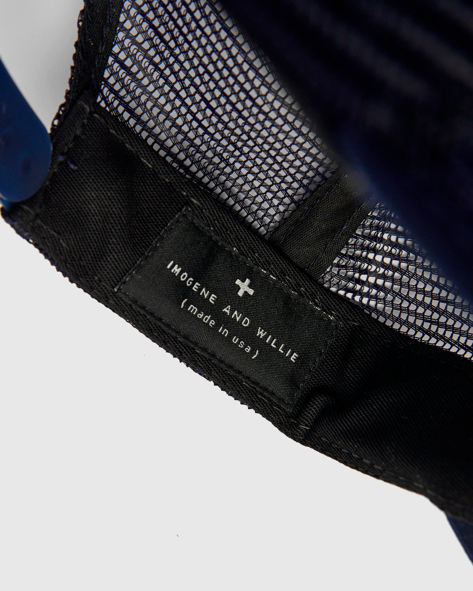 • This all-American trucker cap from Imogene + Willie offers a vintage-style design inspired by the brand's Nashville roots. Referencing old-school trucker caps, the cap sports a medium-high structured peak crown with mesh panelling at the back. Built in the USA with an adjustable snapback closure.