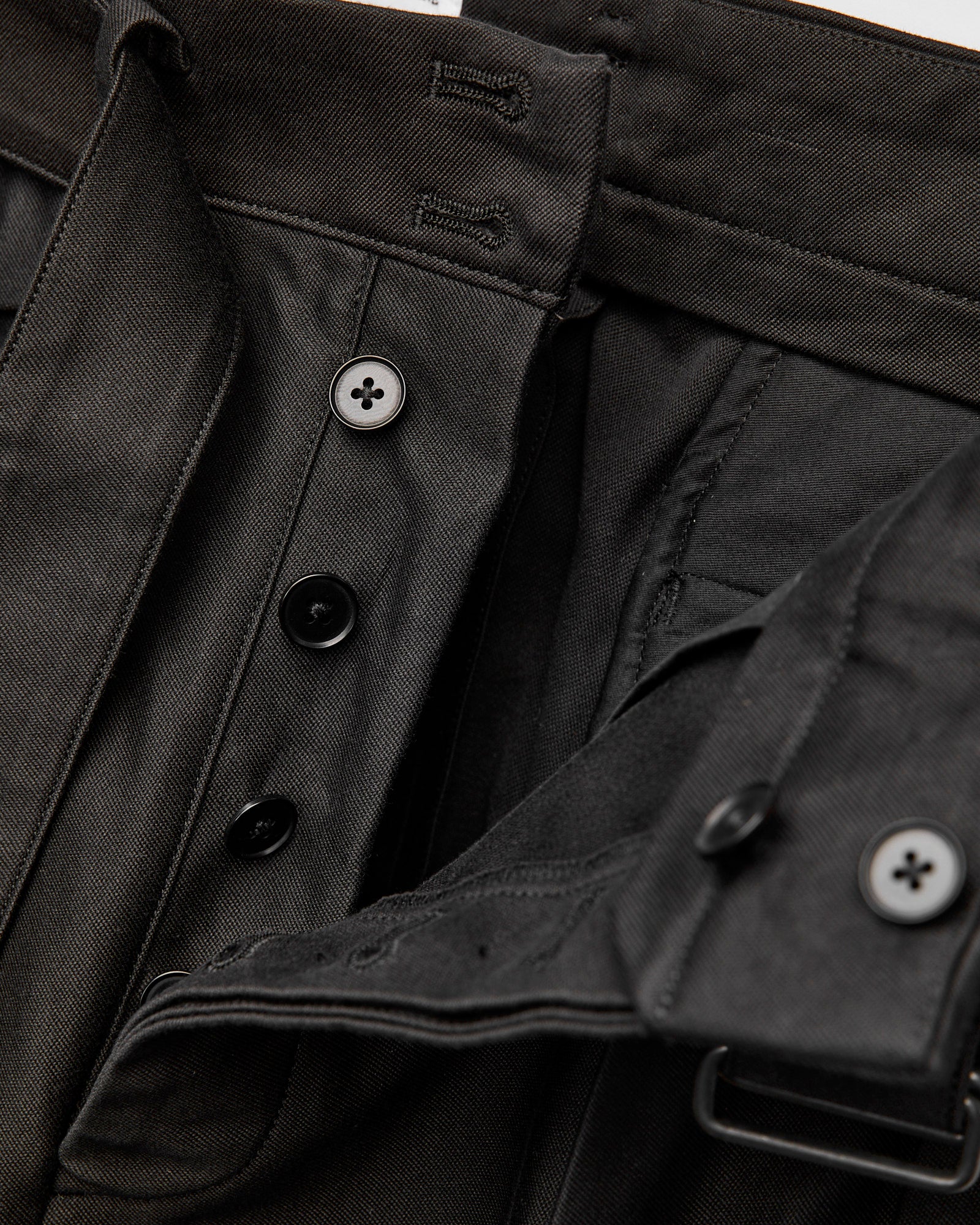 • The Belted Riviera Pants are a classic two-pleat trouser constructed with Kaptain Sunshine’s relaxed-tailored approach. Made from a heavyweight satin-back woven with extra-long staple Egyptian Finx cotton, the pants feature a smooth, lustrous surface and a durable, structured feel. Designed with a detachable belt, traditional slant pockets, and rear flap pockets for a refined yet functional finish.