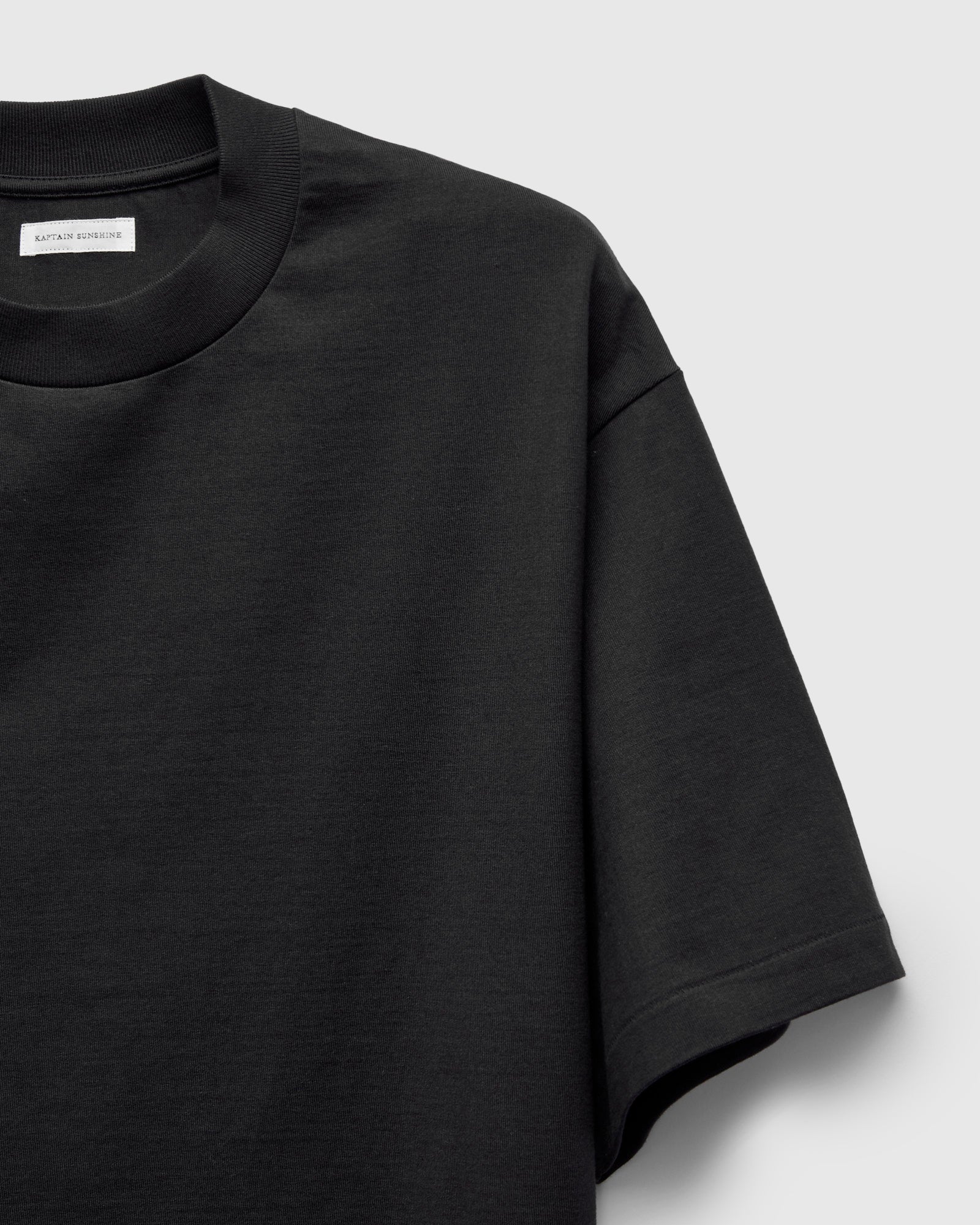 • Kaptain Sunshine's heavyweight jersey fabric is tube-knit using a blend of Suvin and Supima extra-long staple cotton, both prized for their soft hand and smooth surface texture. Referencing vintage midcentury t-shirts, the Half Sleeve shirt is crafted on tubular knitting machines, free of side-seams. Cut in a contemporary-relaxed fit, the shirt is finished with a seamless ribbed collar and vintage style single-stitch hemming.