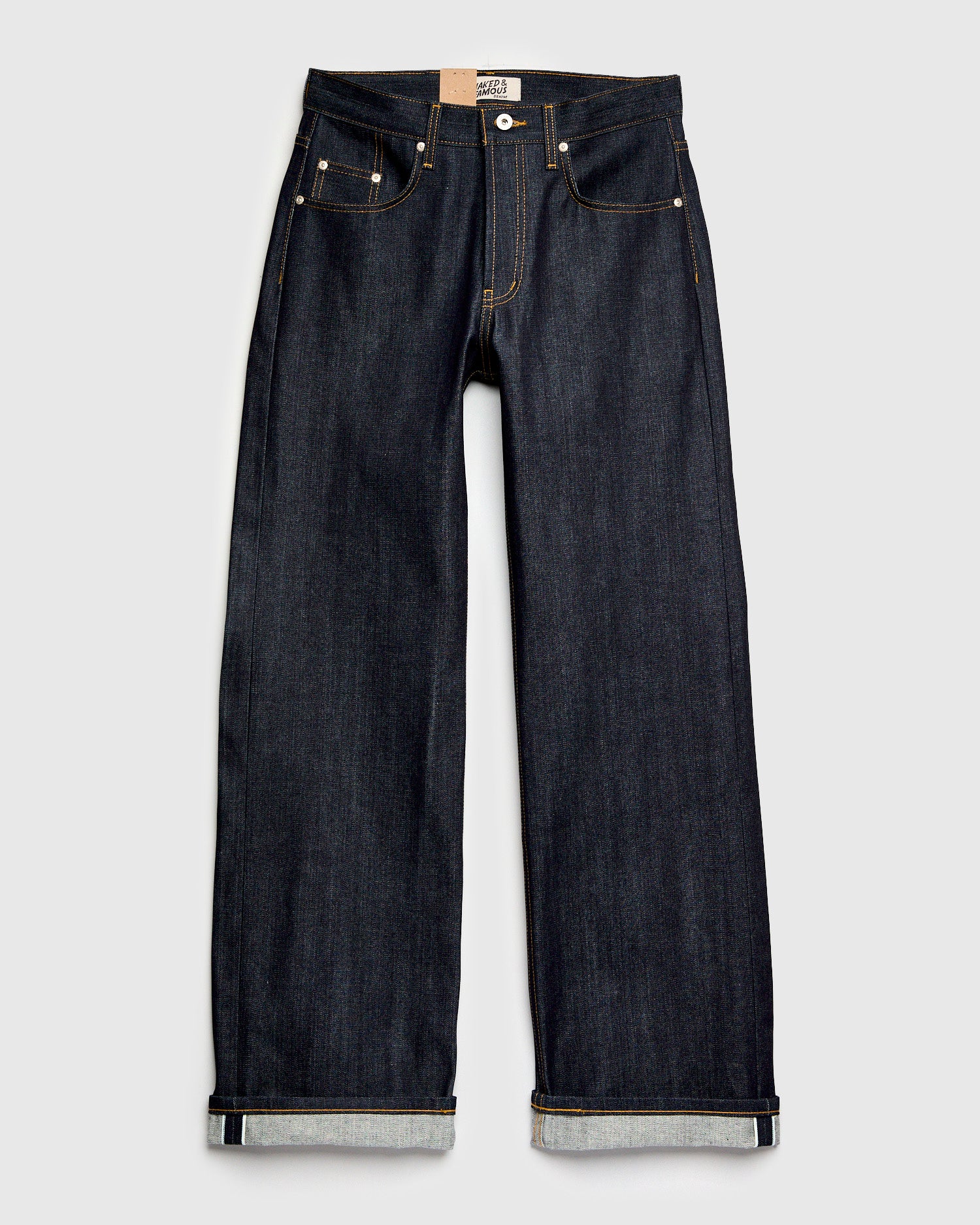 • The Strong Guy fit from Naked & Famous is a relaxed cut featuring a high rise, full seat, roomy thigh, and large wide leg opening