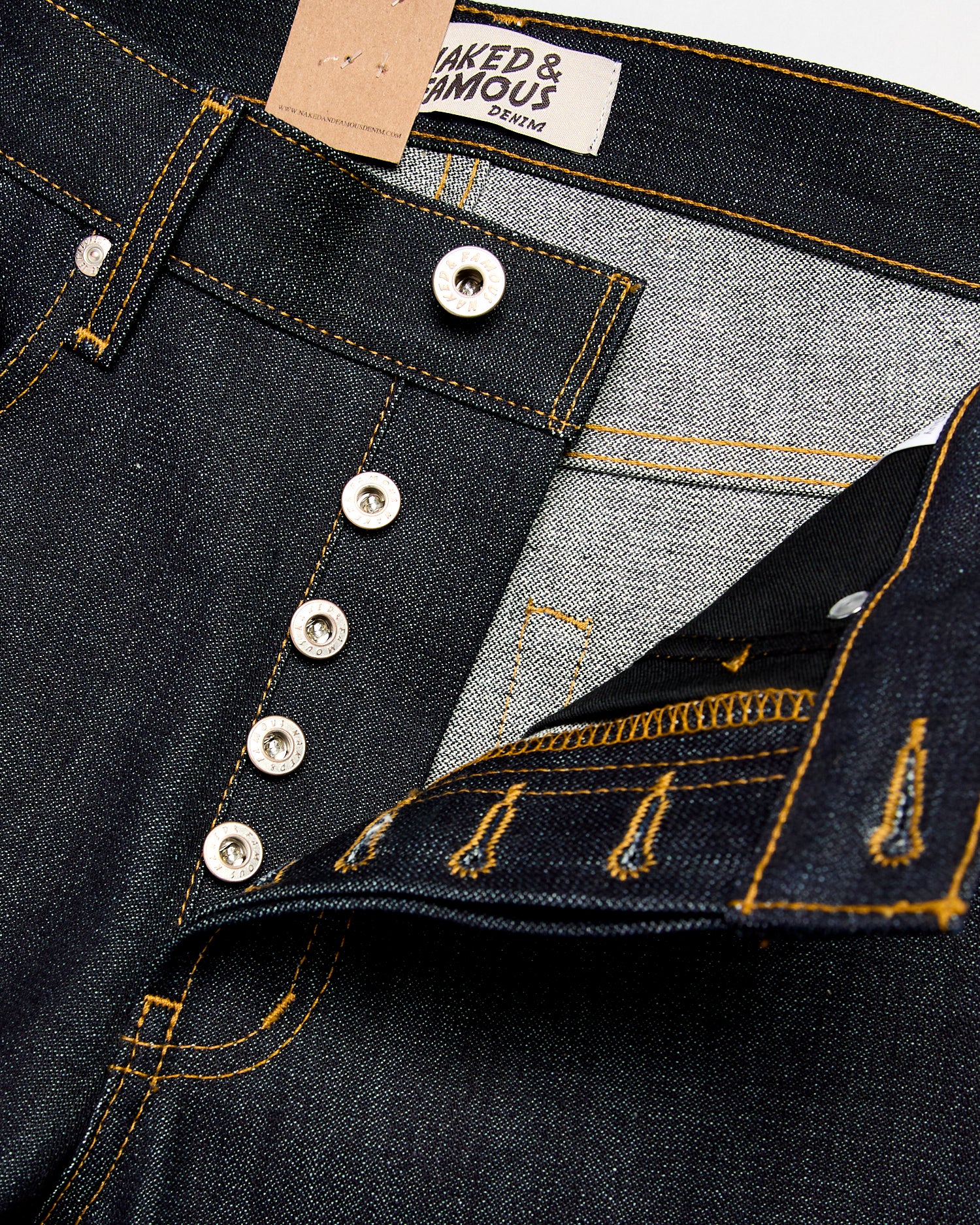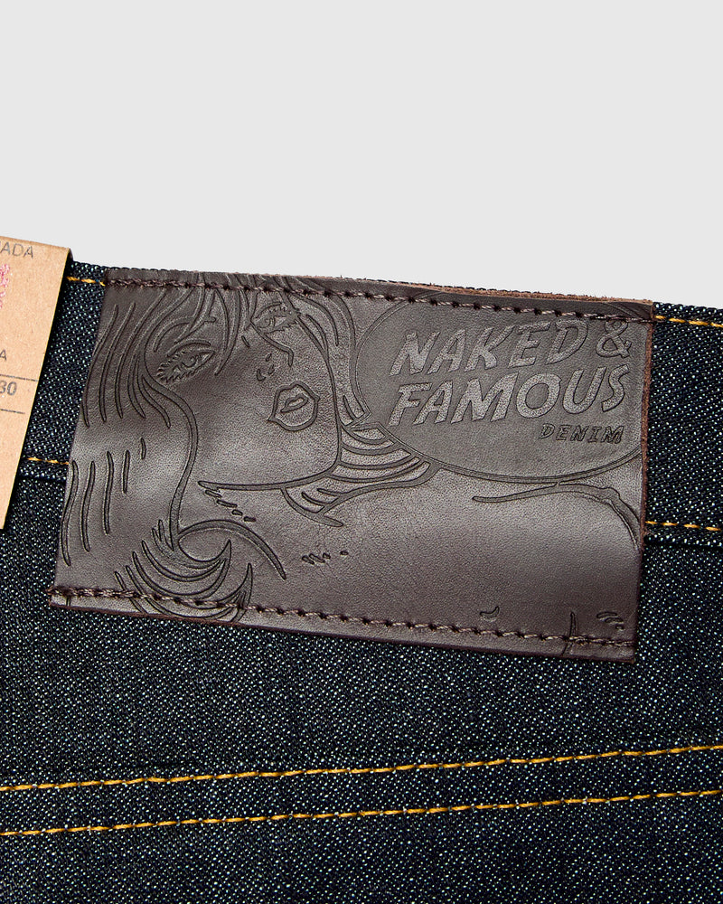 • Known for their creative denim releases, Naked & Famous is anything but normal. The label was founded in 2006 by second-generation denim entrepreneur Brandon Svarc, who followed in his grandfather’s footsteps with a denim brand of his own. The label travels the world in search of the rarest and most unique fabrics, and manufacturers the entirety of their eccentric line in their Montreal headquarters