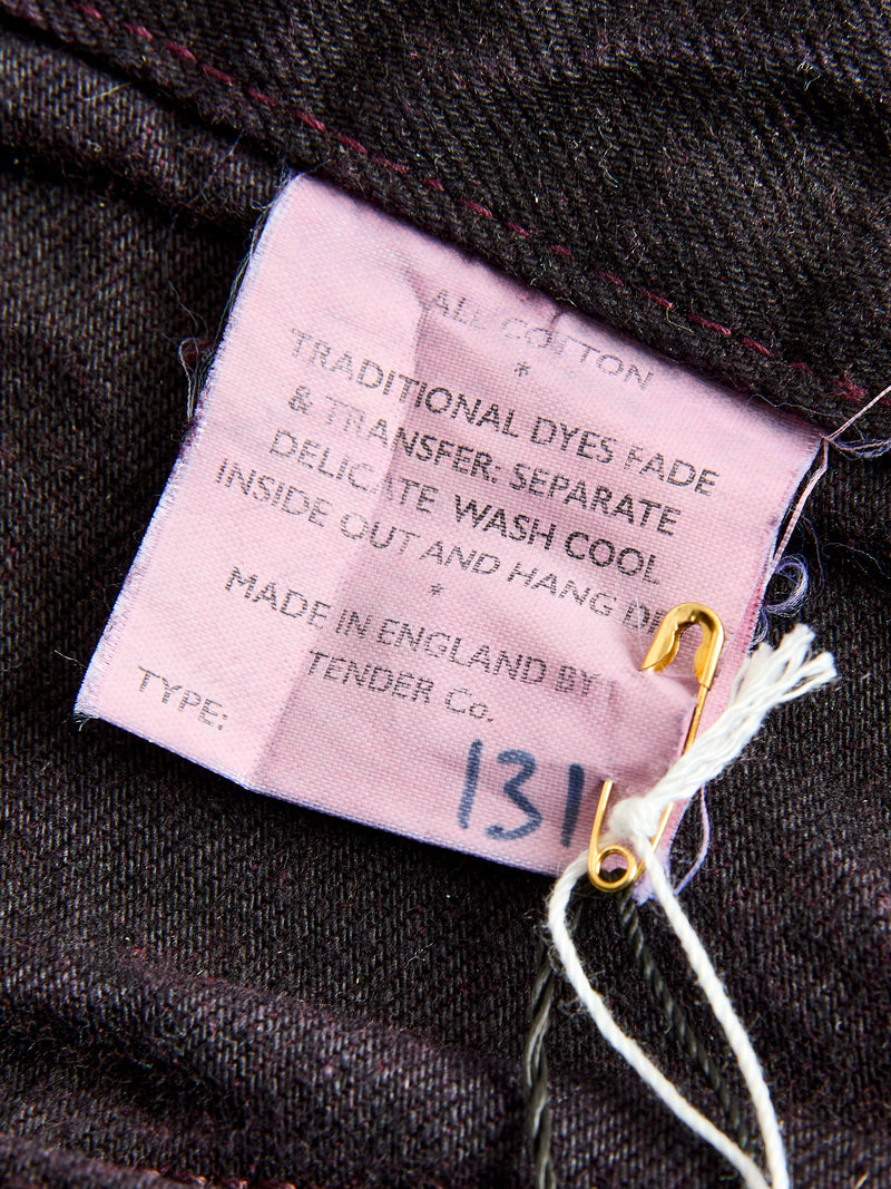 • Tender's Type 130 Jeans are crafted from a 16oz Japanese selvedge denim and cut and sewn in England. This edition receives its color from a hadal overdye: a reactive dye process designed to achieve the deepest color possible. The "hadal" name references Hades, the Greek god of the underworld, as well as the deepest oceanic zone. The jeans feature a modified five-pocket silhouette with straight cut front pockets, and come finished with rounded rivets, filled belt loops, and a custom Tender branded top-button.