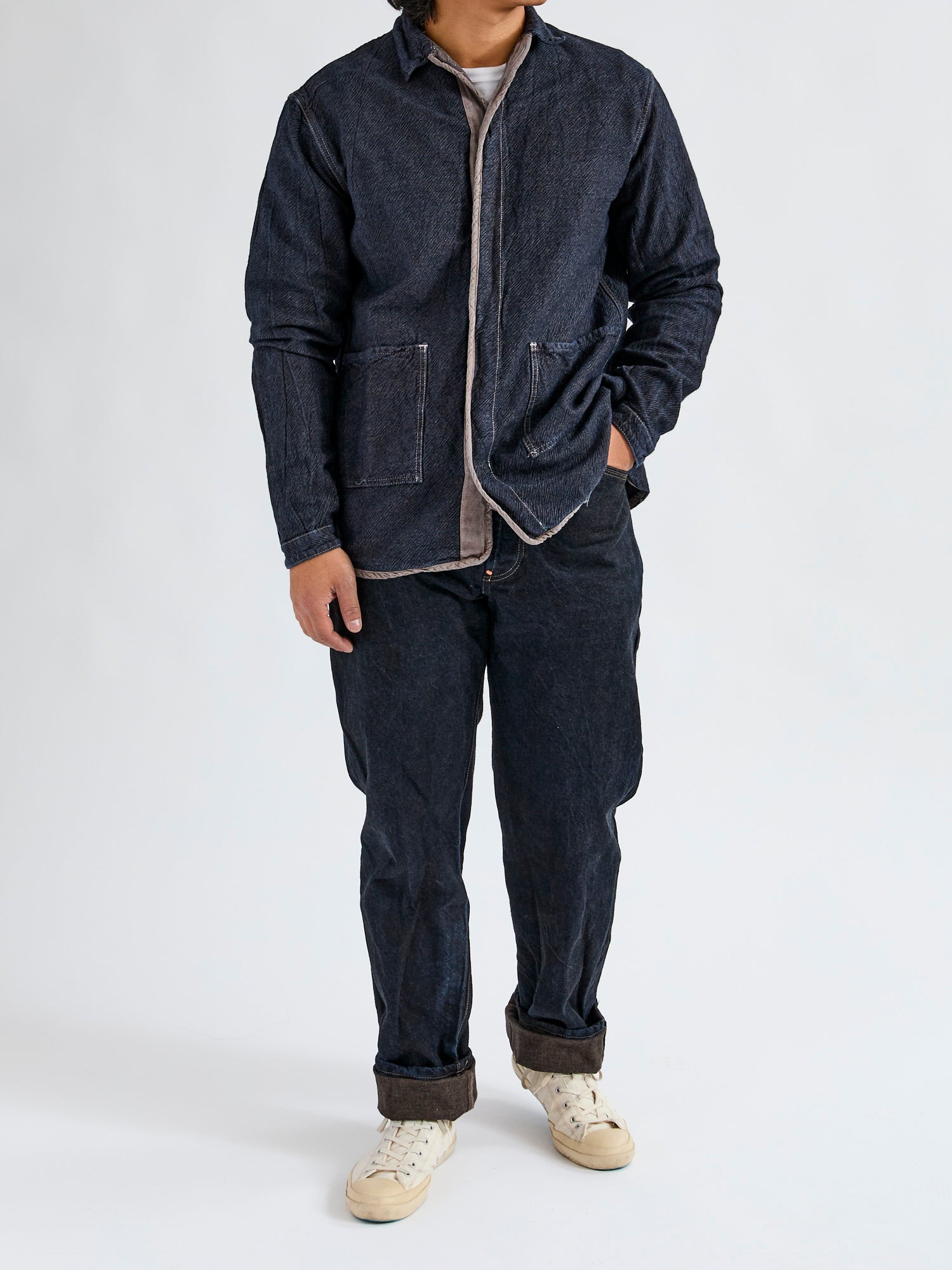 Tender of England, ran by one-man operation William Kroll, creates pieces with worldwide influence filtered through personal experiences. Best described as 'Antique Workwear' and backed by decades of experience working for Evisu, Kroll spent time in Japan learning from master craftsmen how to dye indigo and construct denim, translating to Tender's extensive use of natural dyes and workwear silhouettes.