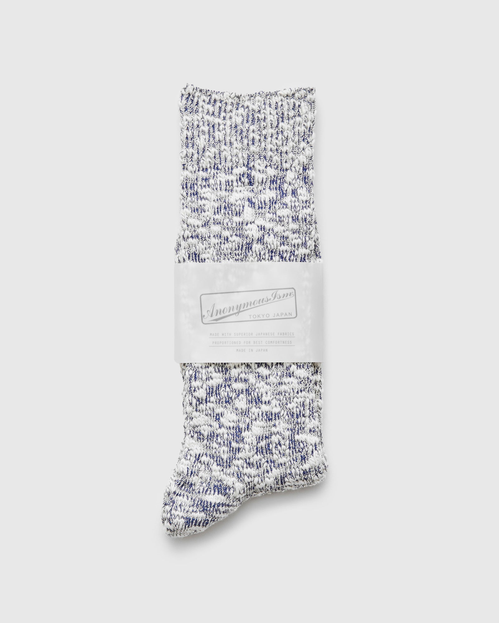 • The "Light Slub Crew" series from AnonymousIsm signature slub socks with a minimalist textured design. Woven using a slub weave yarn, the socks sport a tubular construction with ribbed knitting. Each pair of AnonymousIsm socks are expertly crafted by their team in Tokyo, Japan.