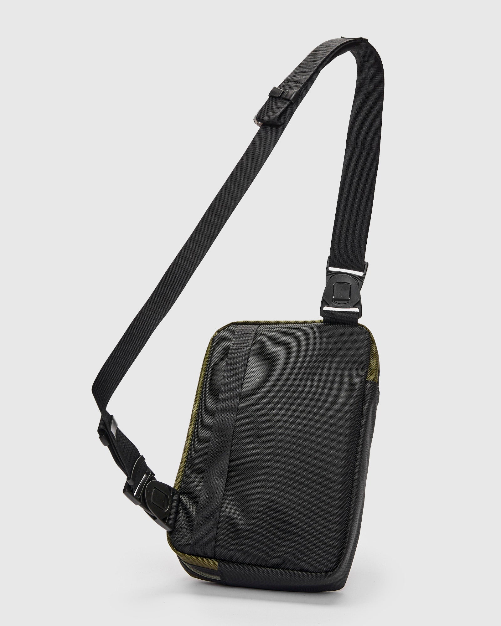 • The Scramble series from Master-Piece is crafted from a 1680 denier high density nylon fabric specially woven using twisted yarn for high durability. The Shoulder Bag sports a two-way zippered main compartment that is easily accessible while on-body, along with extra layered pocketing on the front. The front-most pocket features a cinchable top with mini carabiner for key attachment, as well as a custom Master-Piece magnetic strap closure for extra security. Detailed with mesh and padded interior pockets, reflective leather accent beneath the brand label, and fully removable shoulder strap.