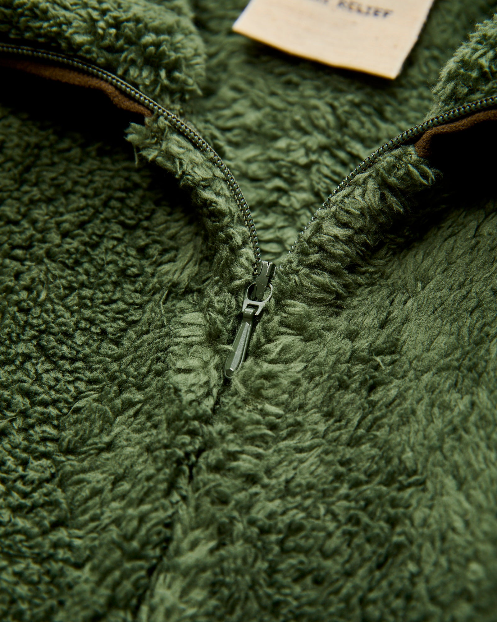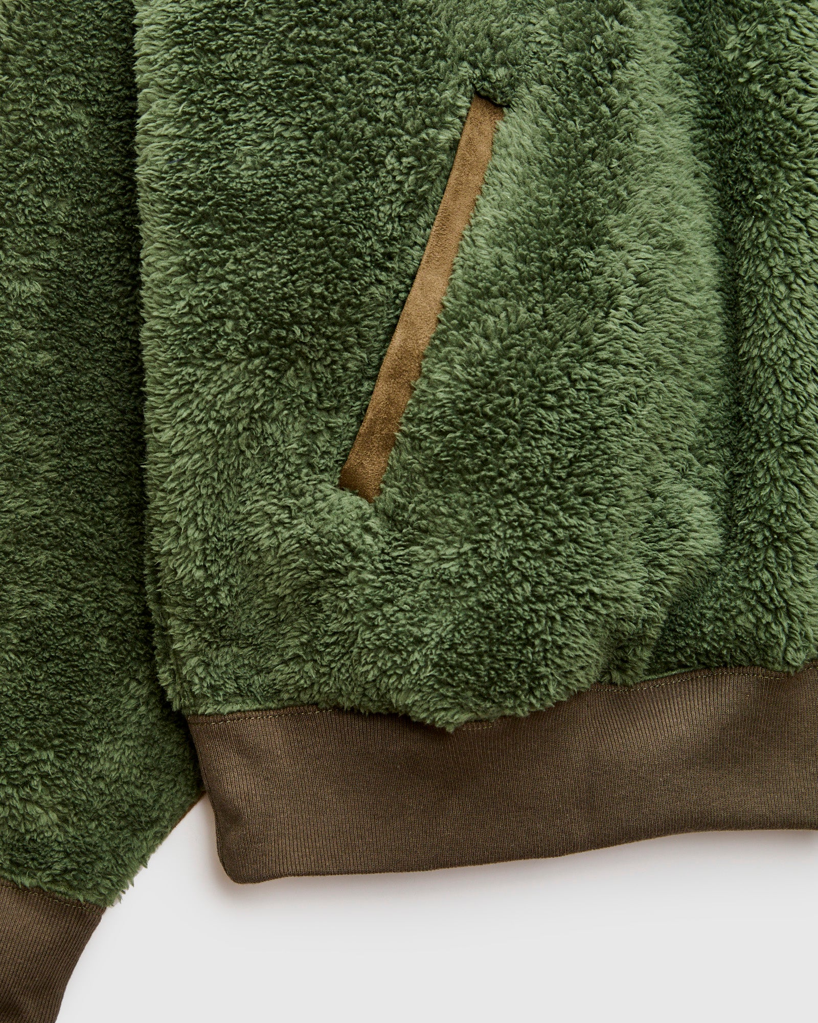 • Remi's Shaggy Fleece Zip is crafted in Japan from a long-pile poly fleece. The fleece fabric features an extremely soft feel, nappy texture, and dense-insulating pile. Fitted with a lined stand collar, front welt pockets, and cut in a boxy-relaxed fit.