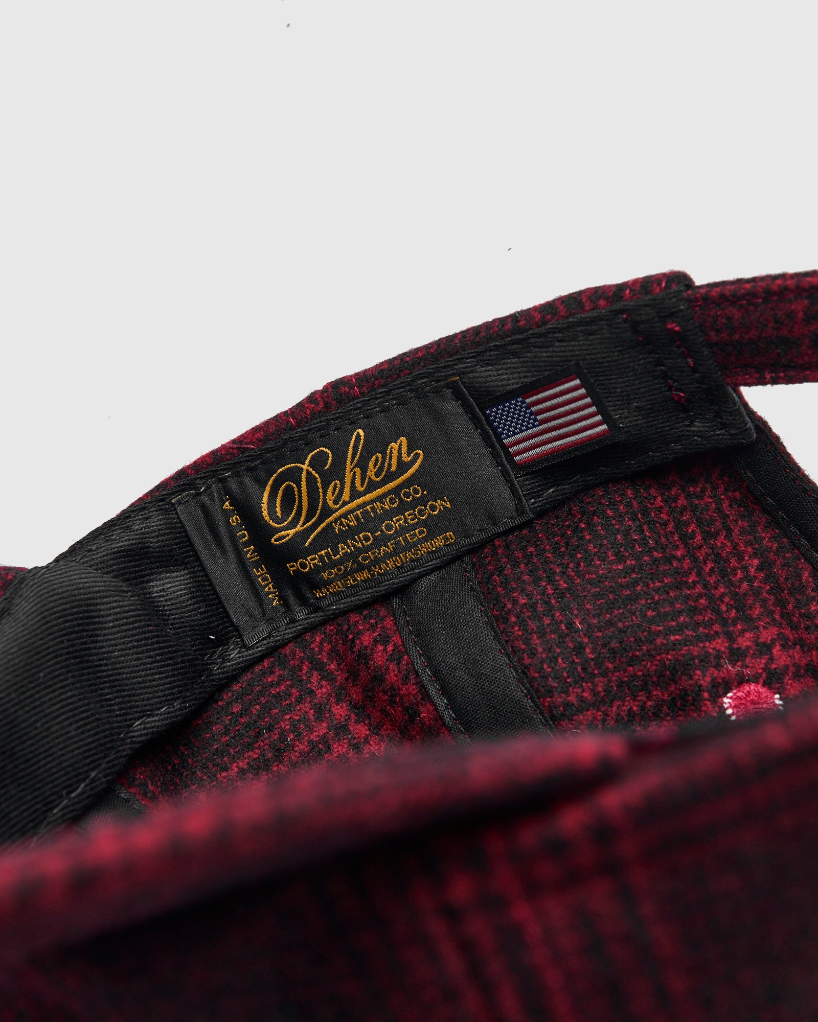 • Dehen's Baseball Hats are crafted in the USA using select fabrics from the brand's collection. Built with a mid-unstructured six panel crown, this version features a custom 20oz canyon plaid wool blend milled exclusively for Dehen.