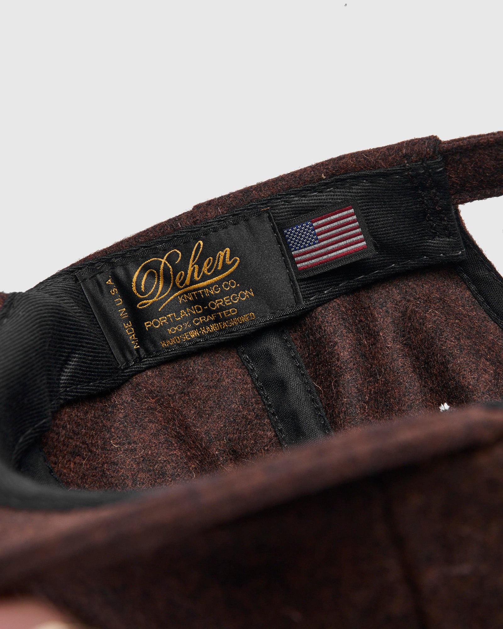 • Dehen's Baseball Hats are crafted in the USA using select fabrics from the brand's collection. Built with an unstructured six panel crown, this version features a 16oz wool milled in the UK by Abraham Moon & Sons.