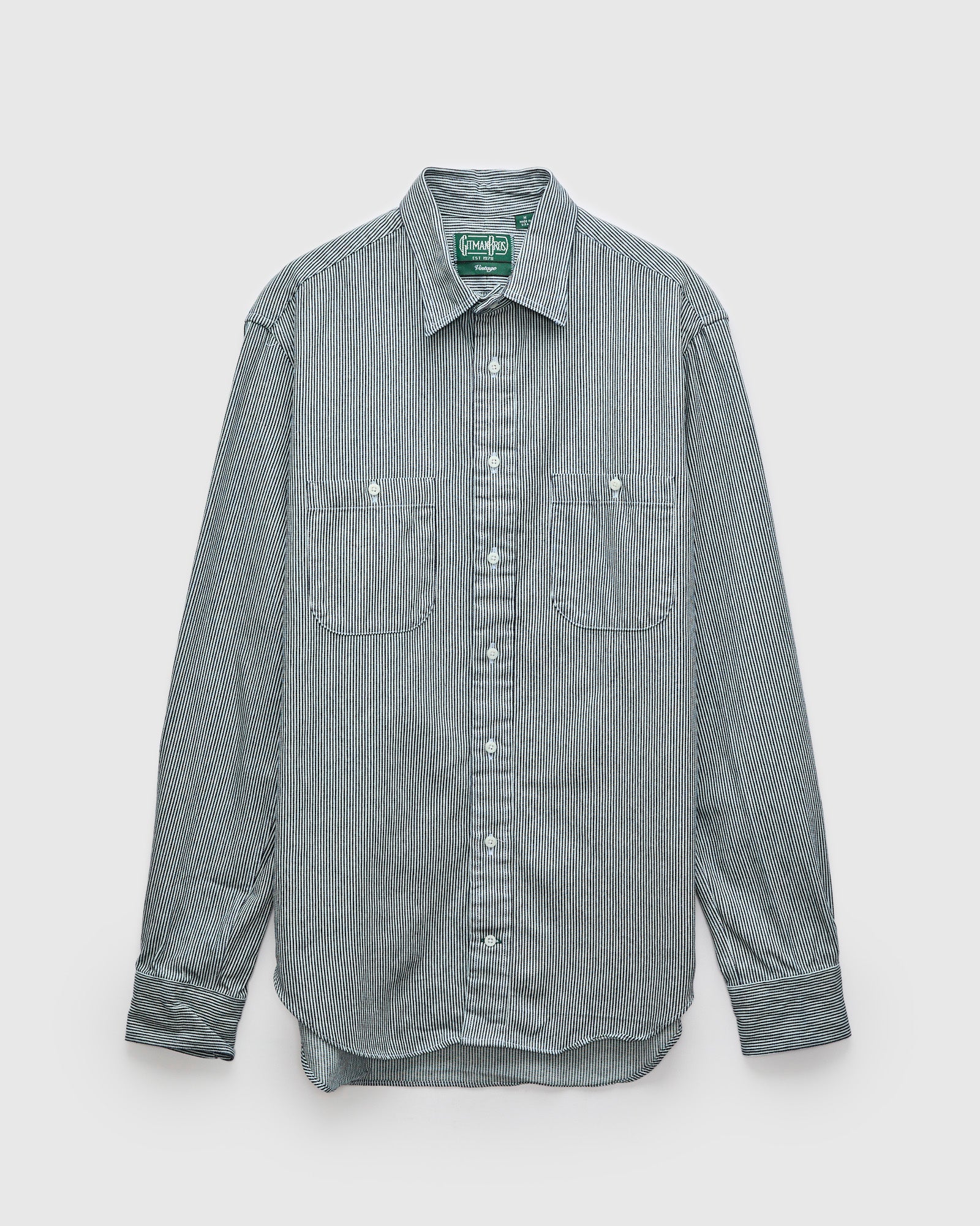 Hickory Stripe Denim Workshirt in Blue Stripe