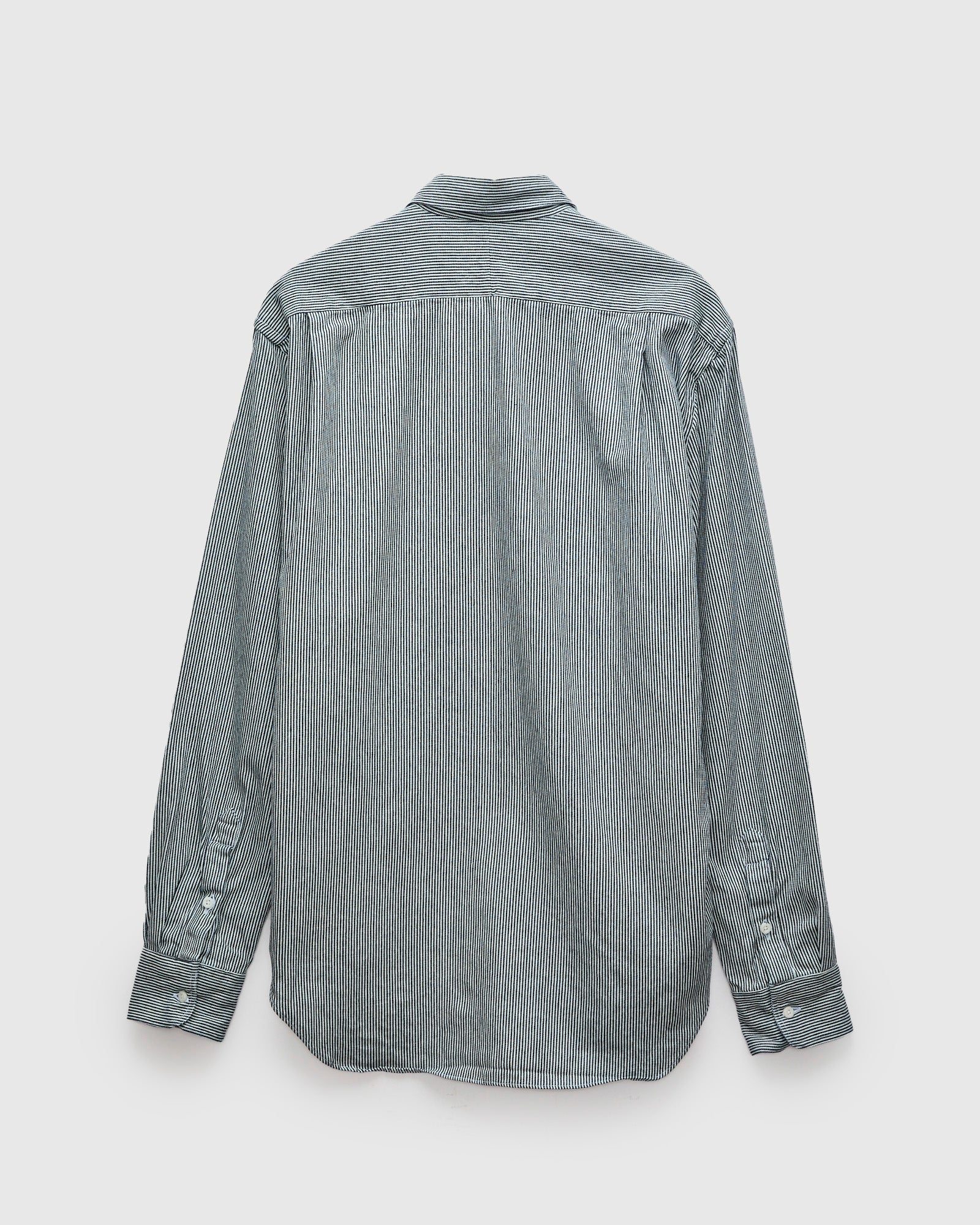 • This work shirt from Gitman Vintage is sewn at the brand’s Ashland, Pennsylvania factory using a 7oz Japanese denim. Combining American craftsmanship with Japanese textiles, the shirt applies Gitman’s shirting expertise to the tried and true utility shirt. Finished with two large chest pockets, reinforced barrel cuffs, thick chalk buttons, and a locker loop at the nape.