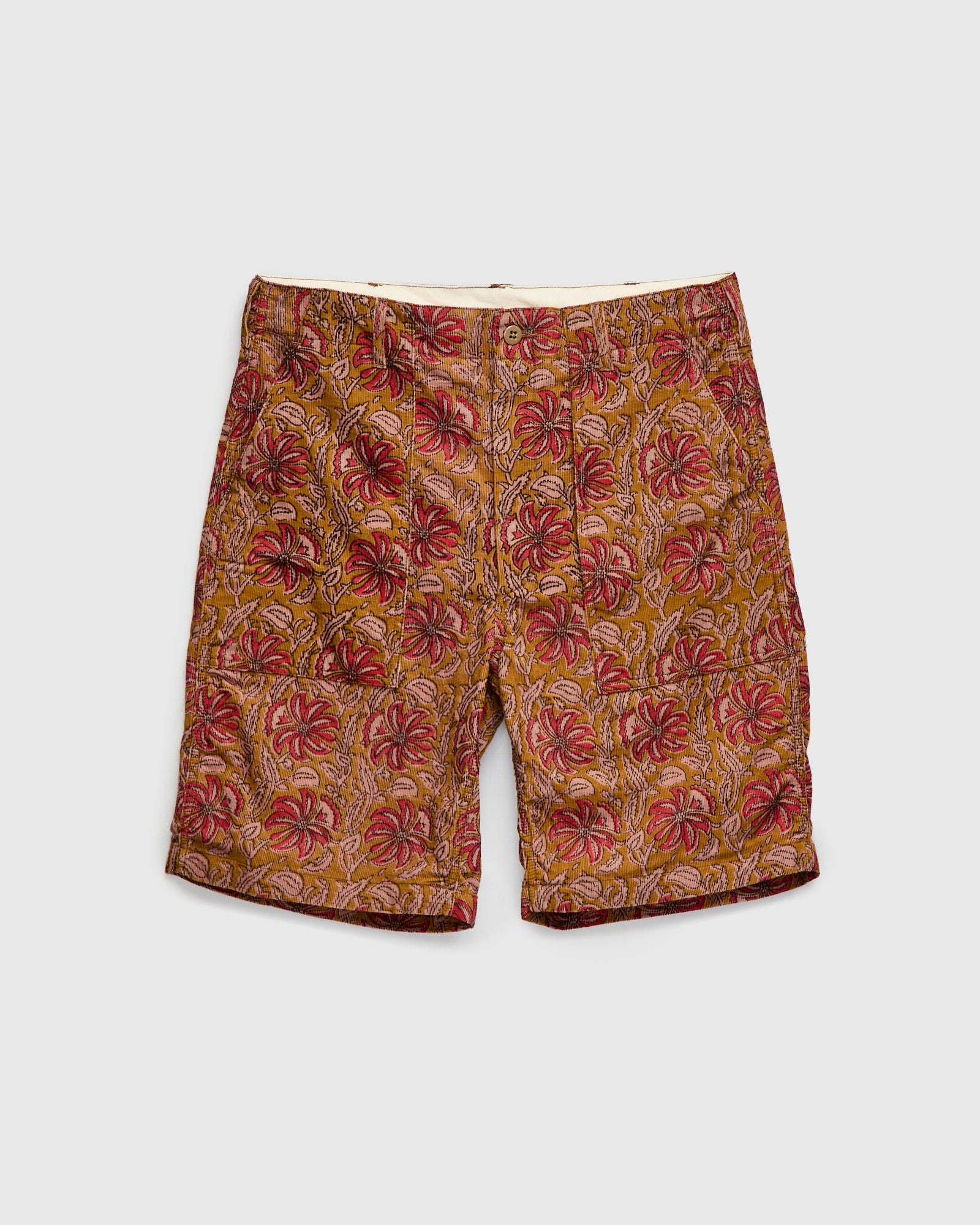Fatigue Shorts in Khaki Floral Corduroy