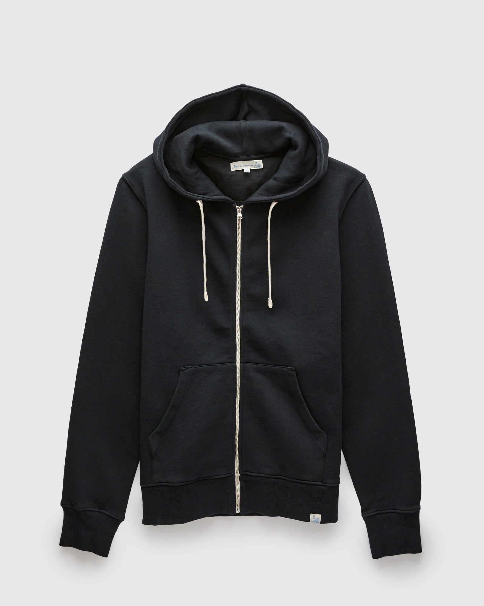 • Woven using certified organic cotton, this hoodie features a timeless athletic sweater design in a comfortable classic fit. Merz B. Schwanen's organic cotton fabric sports a sturdy medium-weight heft, and a soft brushed fleece interior for superior comfort. The garment comes finished with ribbed knit hemming, metal YKK zipper, and under arm gusset.