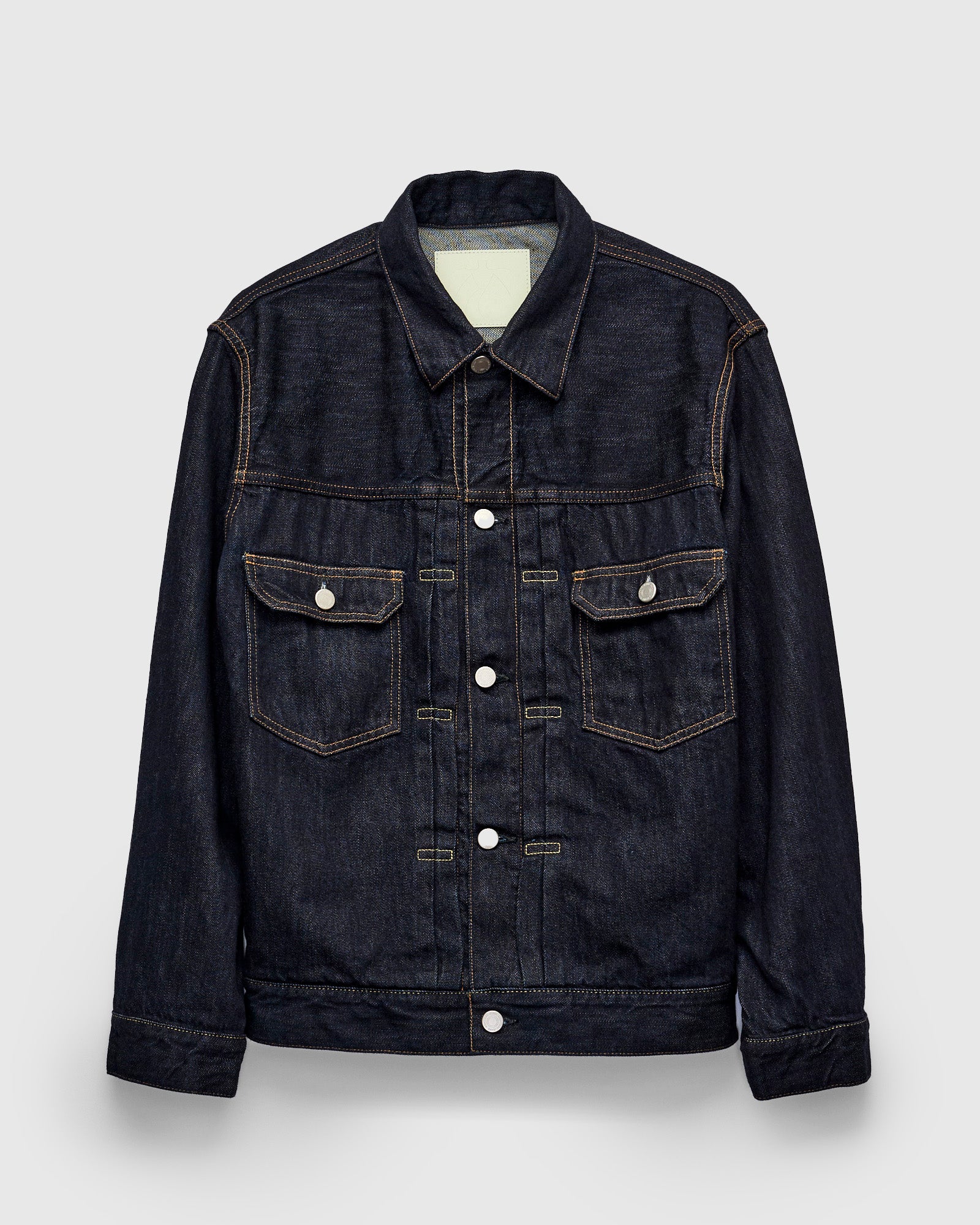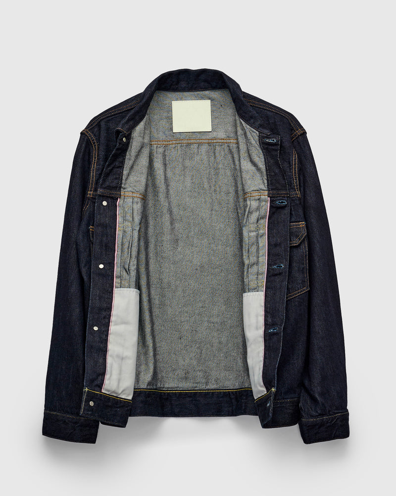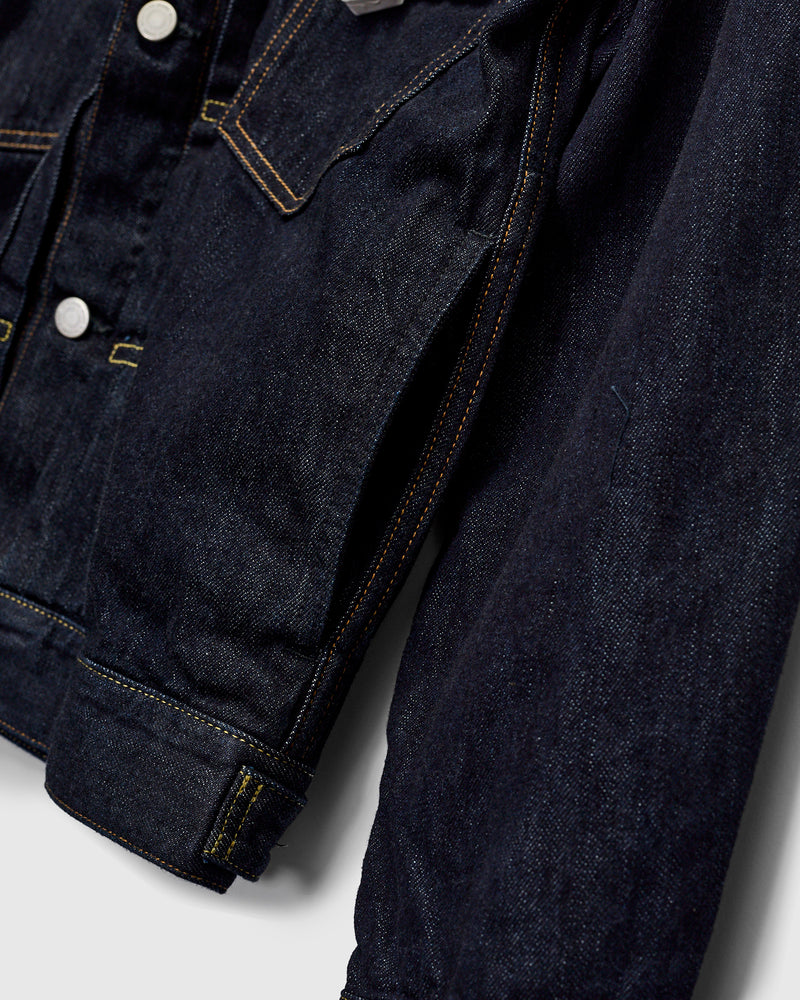 • The MXGJ1008 jacket from Momotaro is the brands Type-II model, cut in a modern relaxed fit and sewn using raw selvedge denim. Momotaro's 11oz fabric is crafted using Zimbabwe cotton for the warp and Suvin cotton at the weft, woven for comfort while retaining durability. Rope-dyed multiple times to achieve the brand’s signature deep “Tokuno Blue,” the fabric is given a one-wash rinse process to remove shrinkage and soften the fabric. Finished with custom Momotaro hardware and details.