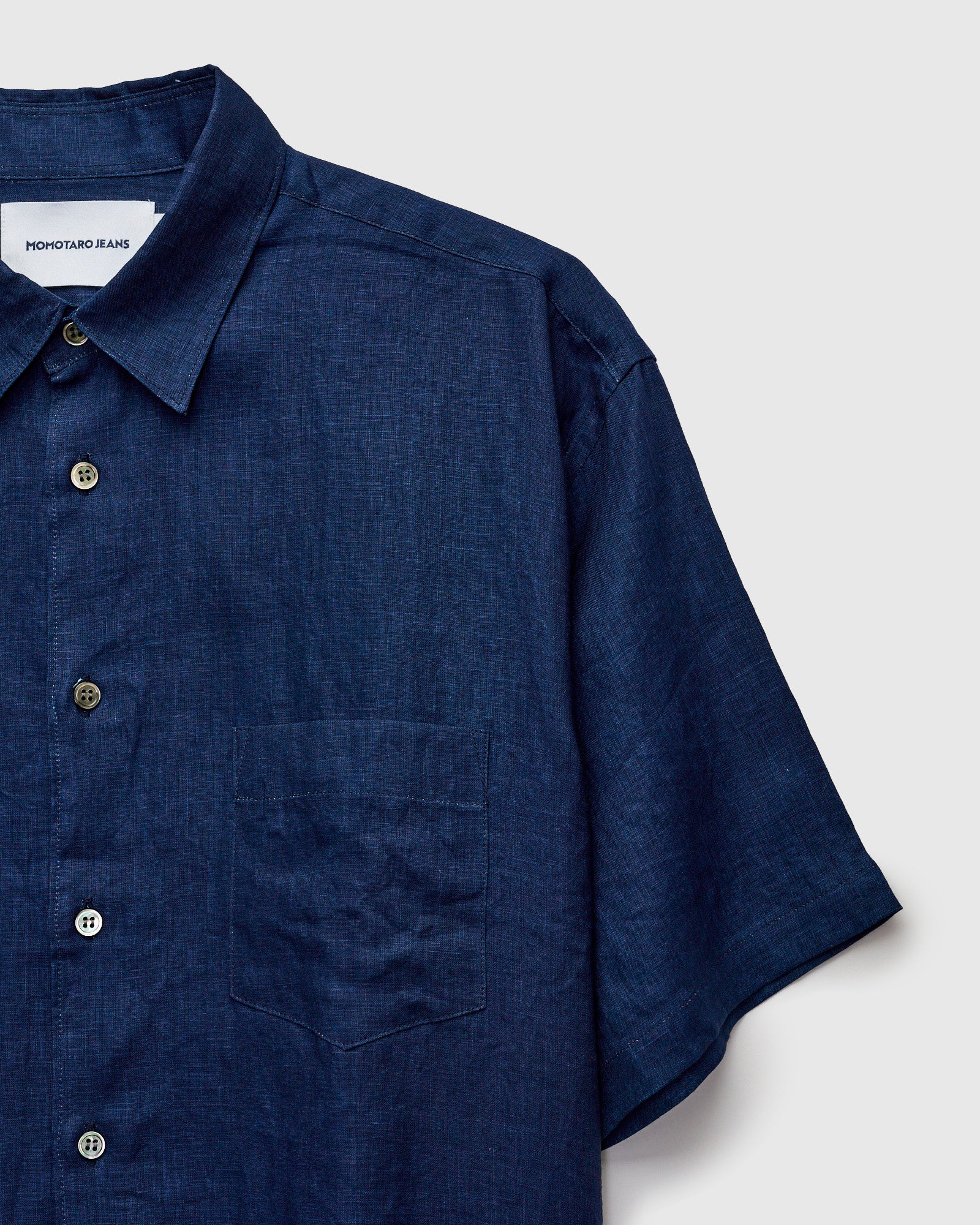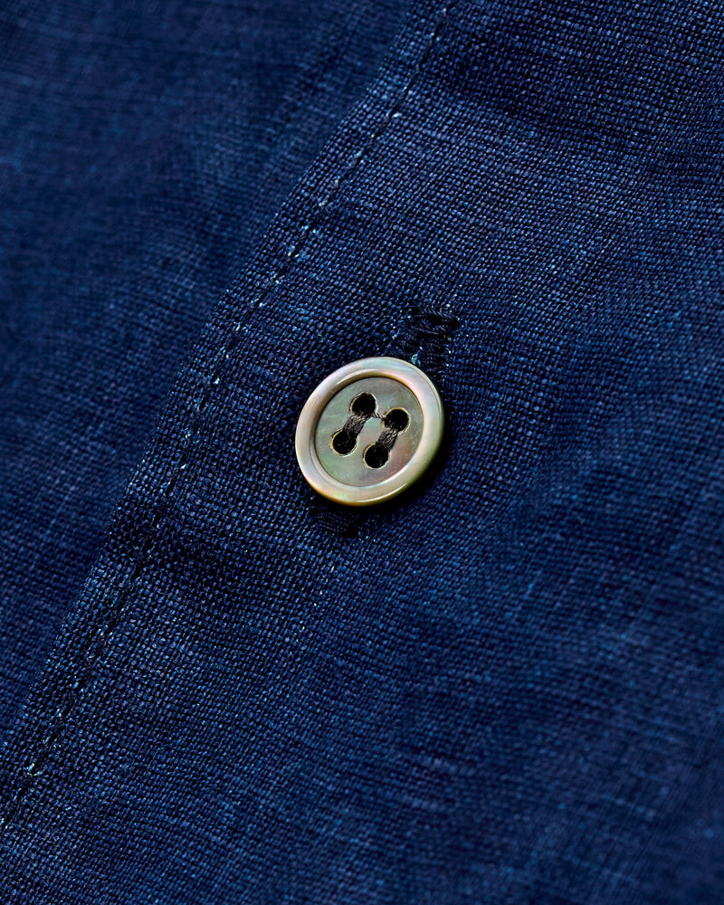 • Crafted using a plain weave linen cloth, this shirt features a deep indigo dye for a lasting color that will transform with wear. The plain weave linen fabric sports a lightweight and breathable feel with a crisp finish. Equipped with mother of pearl buttons and cut in a relaxed fit.