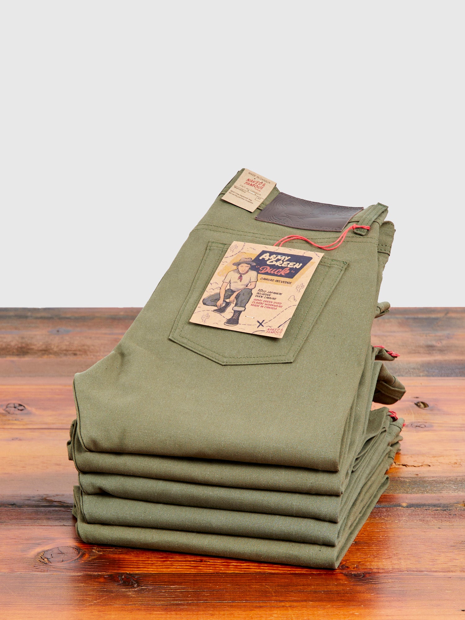 10oz Selvedge Army Green Duck Canvas - Weird Guy Fit