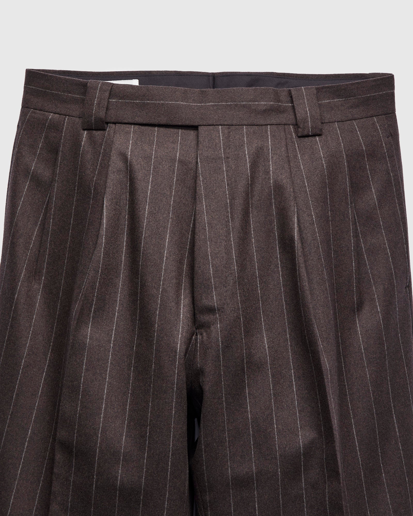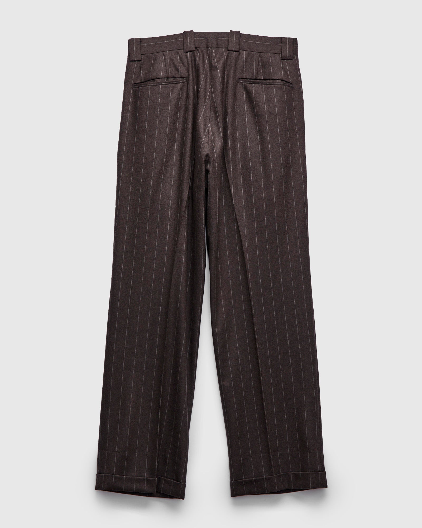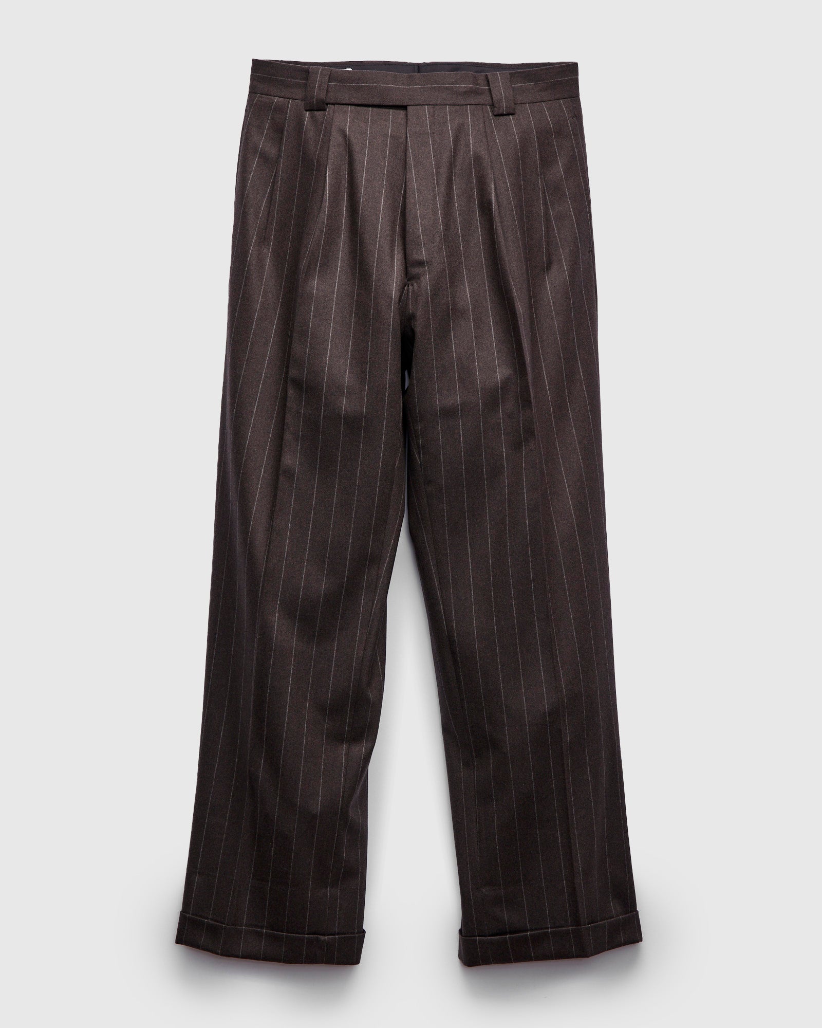 • The 2-Pleat Trouser from Kaptain Sunshine is cut with the brand’s relaxed, soft-tailored approach. Made from a lightweight merino wool flannel woven with contrasting stripes, the fabric has a smooth, soft texture and an easy drape. Designed with a high rise and straight leg, the trousers feature a cupro half-lining, tucked belt loops, and two front pleats.